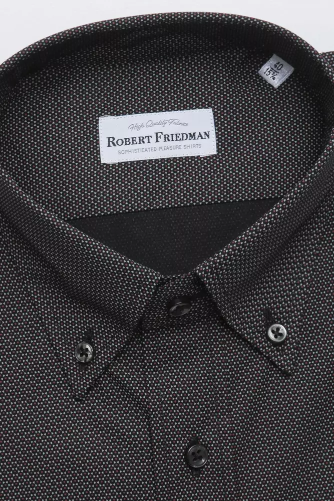 Шагните в непринужденную изысканность с рубашкой на пуговицах Robert Friedman, которая воплощает в себе вневременной стиль с современной изюминкой. Ощутите роскошь 100% хлопка, который обеспечивает непревзойденный комфорт и долговечность. Эта универсальная черная рубашка выделяется как неотъемлемая часть гардероба для модного джентльмена. Ее тщательный пошив обещает идеальную посадку для любого случая, от официальных встреч до повседневных выходов.