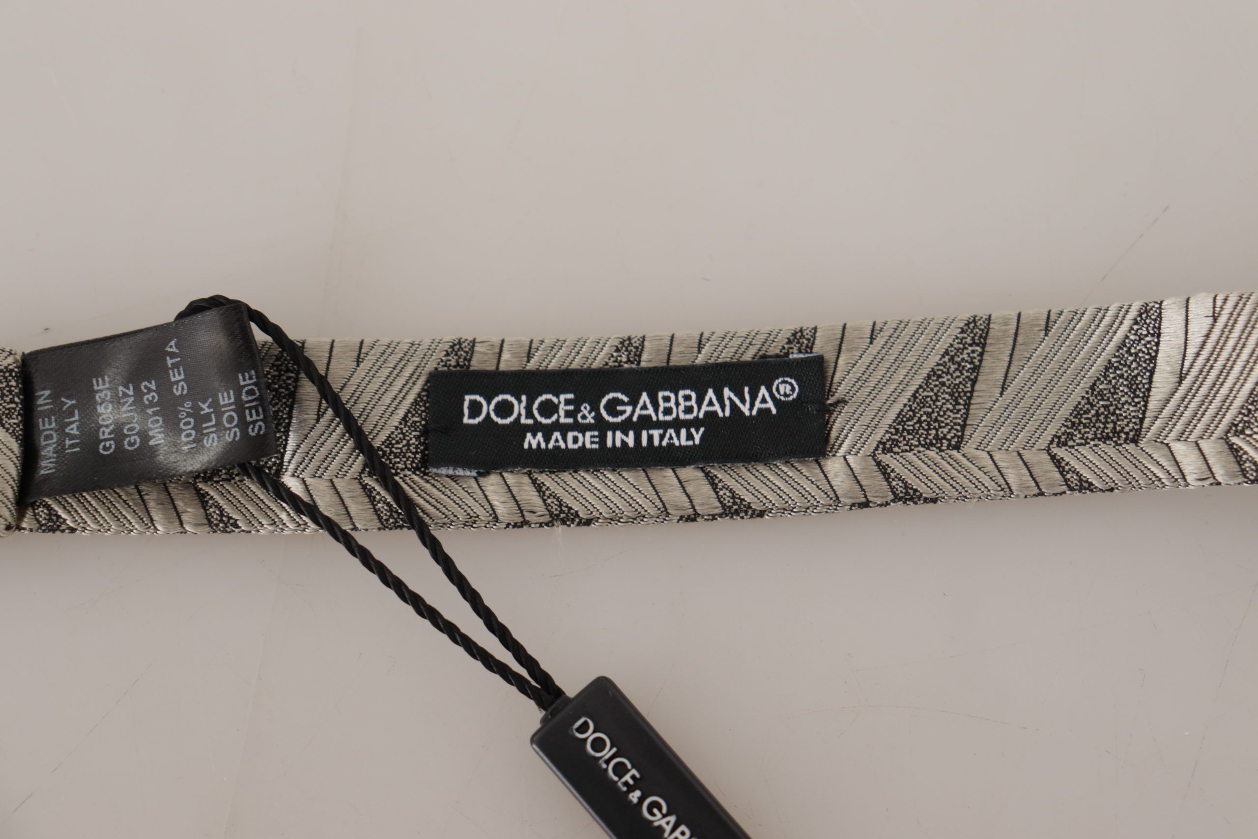 Излучайте изысканность с этим совершенно потрясающим, 100% подлинным серым галстуком-бабочкой от Dolce & Gabbana. Этот аксессуар одного размера с регулируемым шейным ремешком, идеально подходящий для создания жизнерадостного впечатления на любом высококлассном мероприятии, тщательно изготовлен из тончайшего шелка. Разработанный и произведенный в Италии, его безупречное качество и вневременная привлекательность дополнят ваш вечерний наряд.