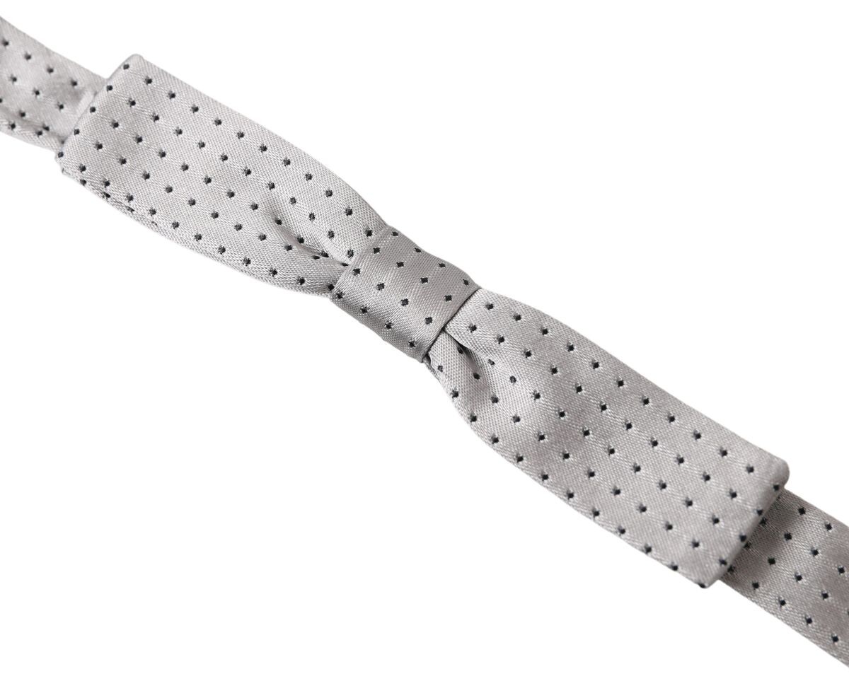 Откройте для себя вершину элегантности с нашим 100% подлинным, абсолютно новым галстуком-бабочкой Dolce & Gabbana. Этот шедевр из серого шелка, украшенный уникальной металлической застежкой в форме крючка, является свидетельством роскошного мастерства эксклюзивной коллекции Dolce & Gabbana.