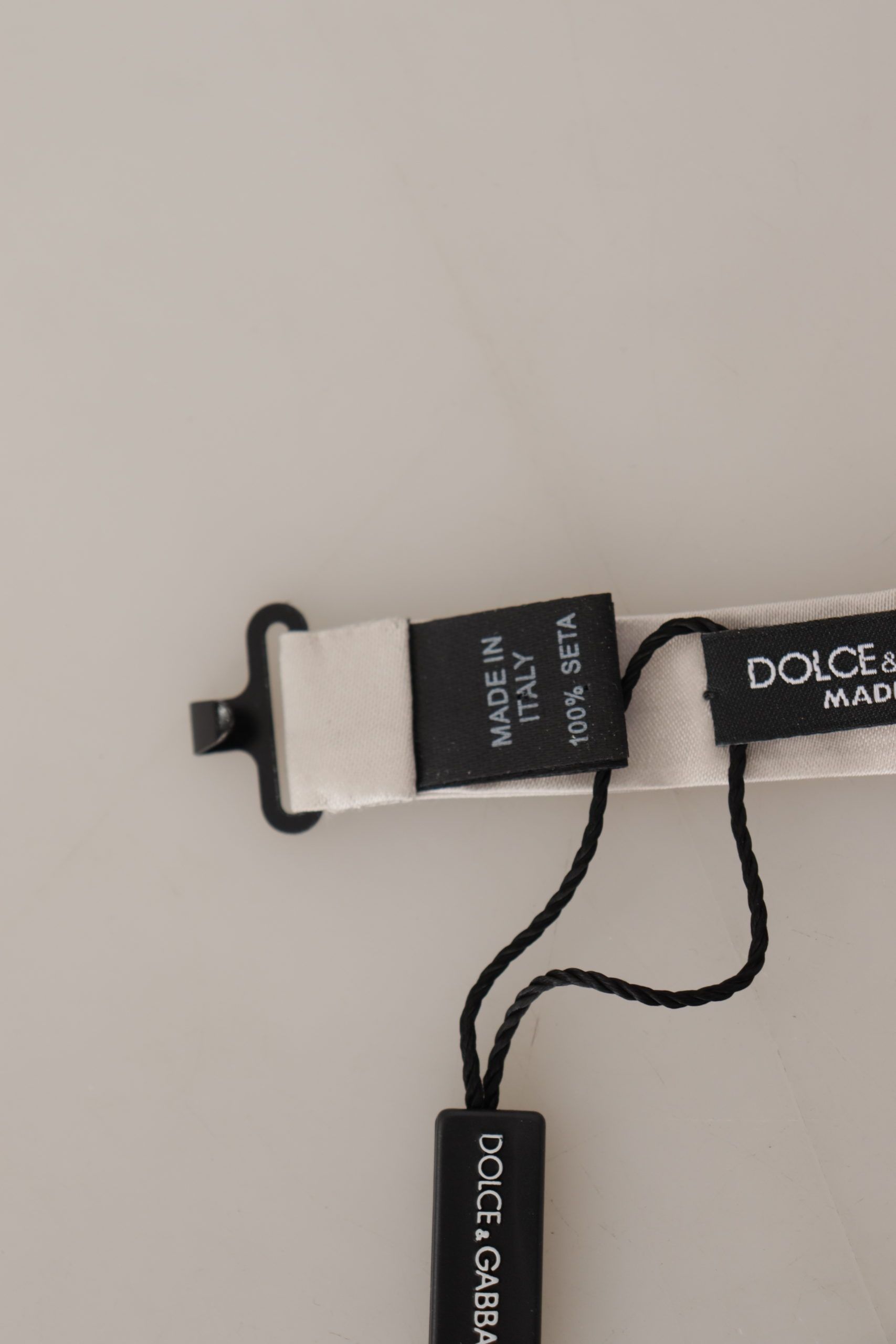 Усильте свой официальный наряд с помощью этого совершенно потрясающего, нового 100% подлинного шелкового галстука-бабочки Dolce & Gabbana. Его элегантный серый цвет и предварительно завязанный дизайн предлагают идеальное сочетание роскоши и удобства, что делает его идеальным выбором для любого важного мероприятия. Сделанный в Италии, он излучает изысканность и мастерство с регулируемым шейным ремешком для удобной, индивидуальной посадки, которая действительно подходит всем.
