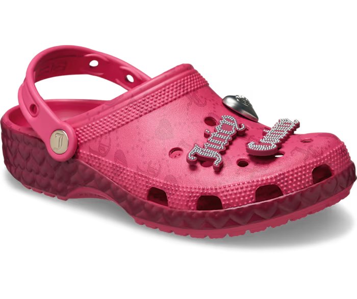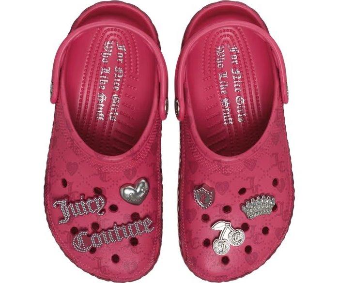 Коллекция Juicy Couture прибыла, и комфорт еще никогда не был таким роскошным! Классические сабо малинового цвета выполнены в монохромной цветовой гамме и украшены тонкими деталями дизайна, такими как тисненый узор в виде сердца на подошве и логотип Juicy Couture на верхней части сабо. Шесть металлических и ослепительных брелоков Jibbitz украшают сабо, потому что, конечно же, Juicy Couture не может быть без гламура!