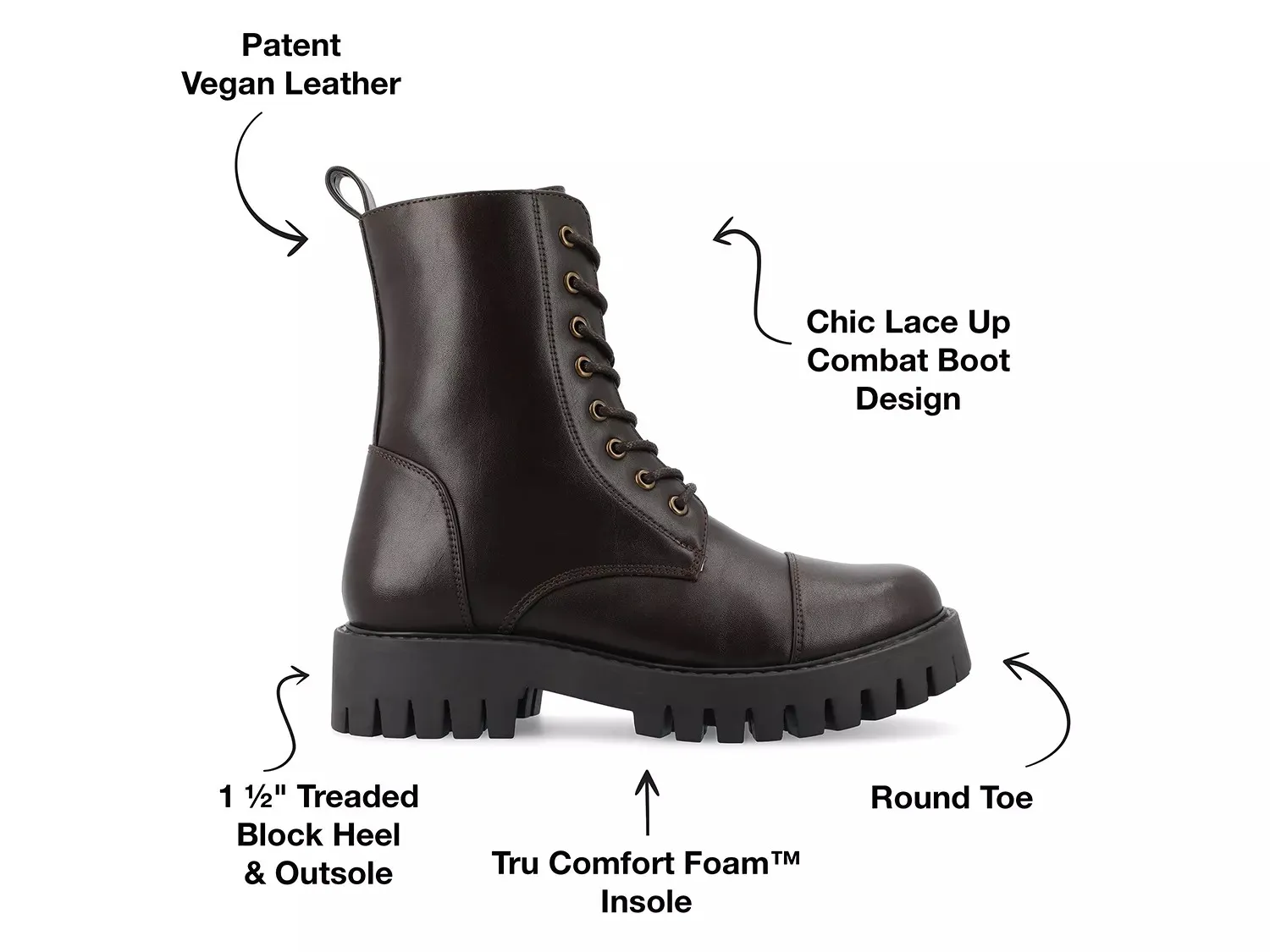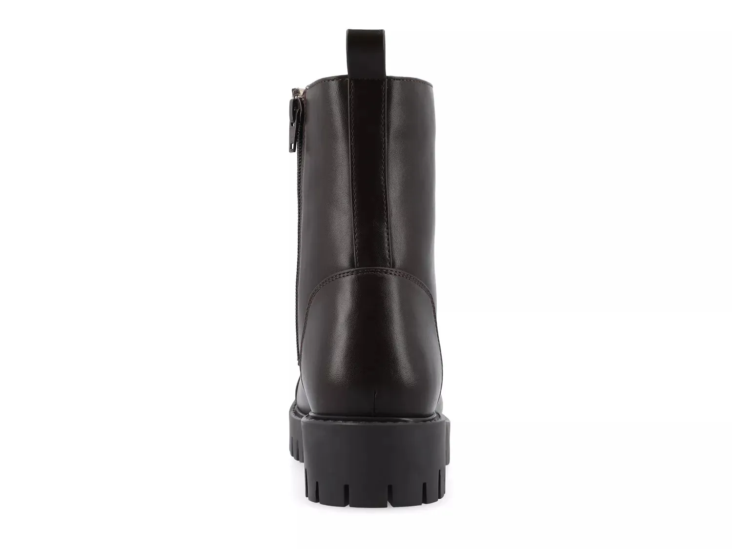 Улучшите свой модный настрой с помощью ботильонов Aaley из коллекции Journee. Ботинки на боевую тематику с шикарным верхом из веганского синтетического материала имеют шнуровку и молнию для идеальной посадки. Подошва с выступами обеспечивает надежное сцепление.