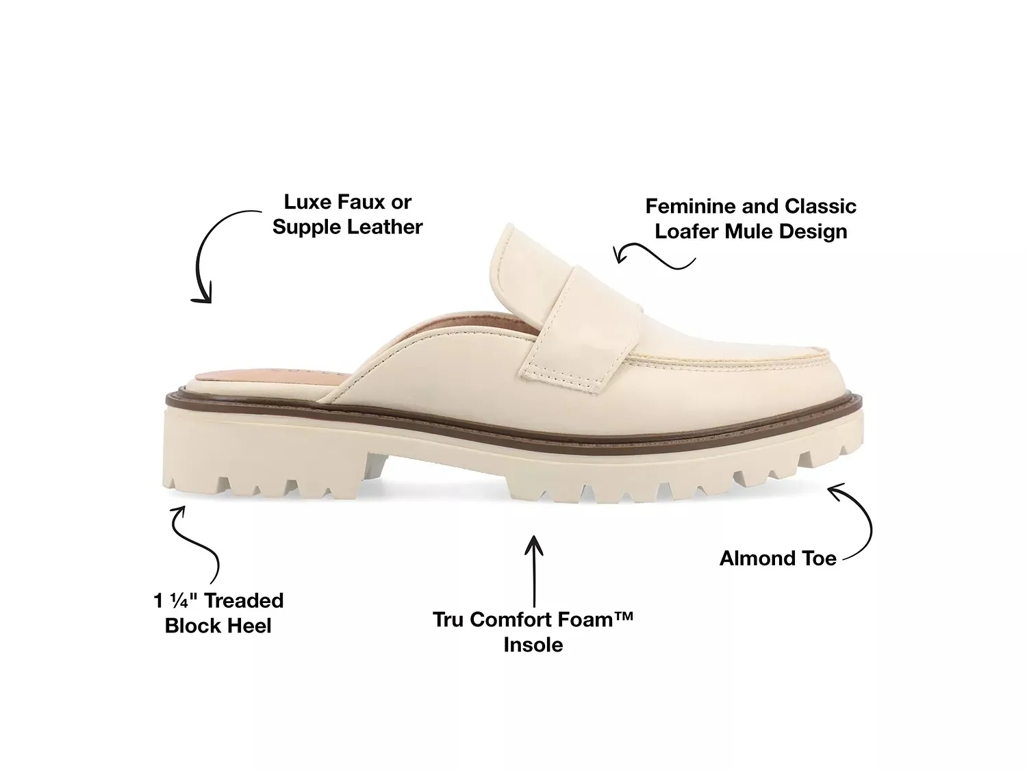 Мул Mycah из коллекции Journee Collection может принести вам комплименты, куда бы вы ни пошли. Мокасины для лоферов, спроектированные с современным миндалевидным носком спереди, имеют правильный подъем благодаря прочному блочному каблуку и тонкой платформе. С стелькой из пеноматериала Tru Comfort наслаждайтесь комфортом в течение всего дня.