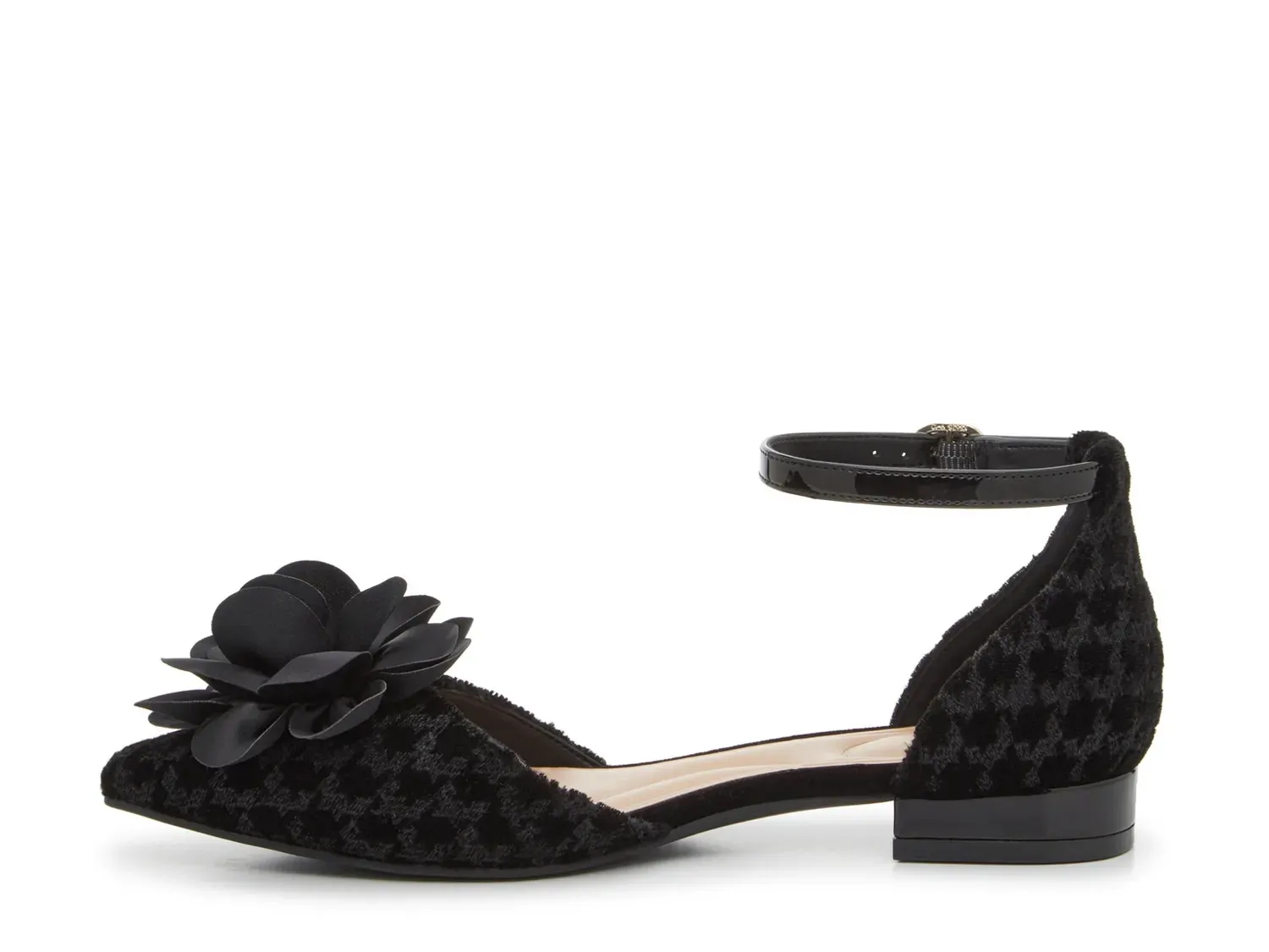 Улучшите свой образ с помощью силы цветов! Балетки Obelia от Kelly & Katie добавляют веселья в любой образ благодаря гладкому заостренному носку, изящному дизайну ремешка на щиколотке и цветочному акценту. В комплекте с изысканным узором в виде гусиной лапки с тиснением из бархатной ткани.