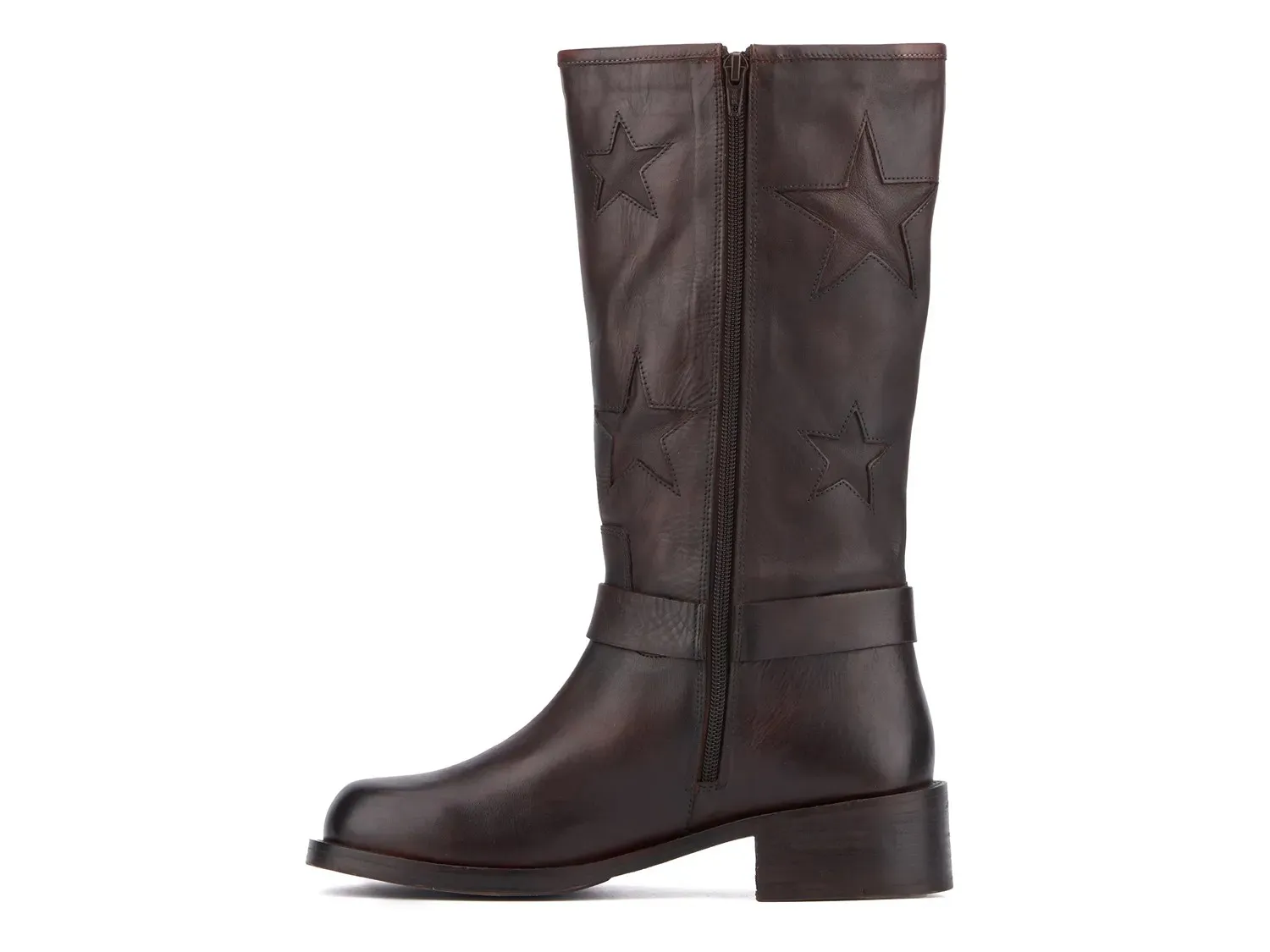 Воплотите модный стиль в ботинках Mathilde от Vintage Foundry. Этот кожаный сапог украшен накладными звездами на голенище, чтобы привлечь внимание. Детали ремня безопасности с акцентом на уплотнительное кольцо добавляют роскоши, в то время как полированные намеки на носке и пяточной части остаются прекрасными.