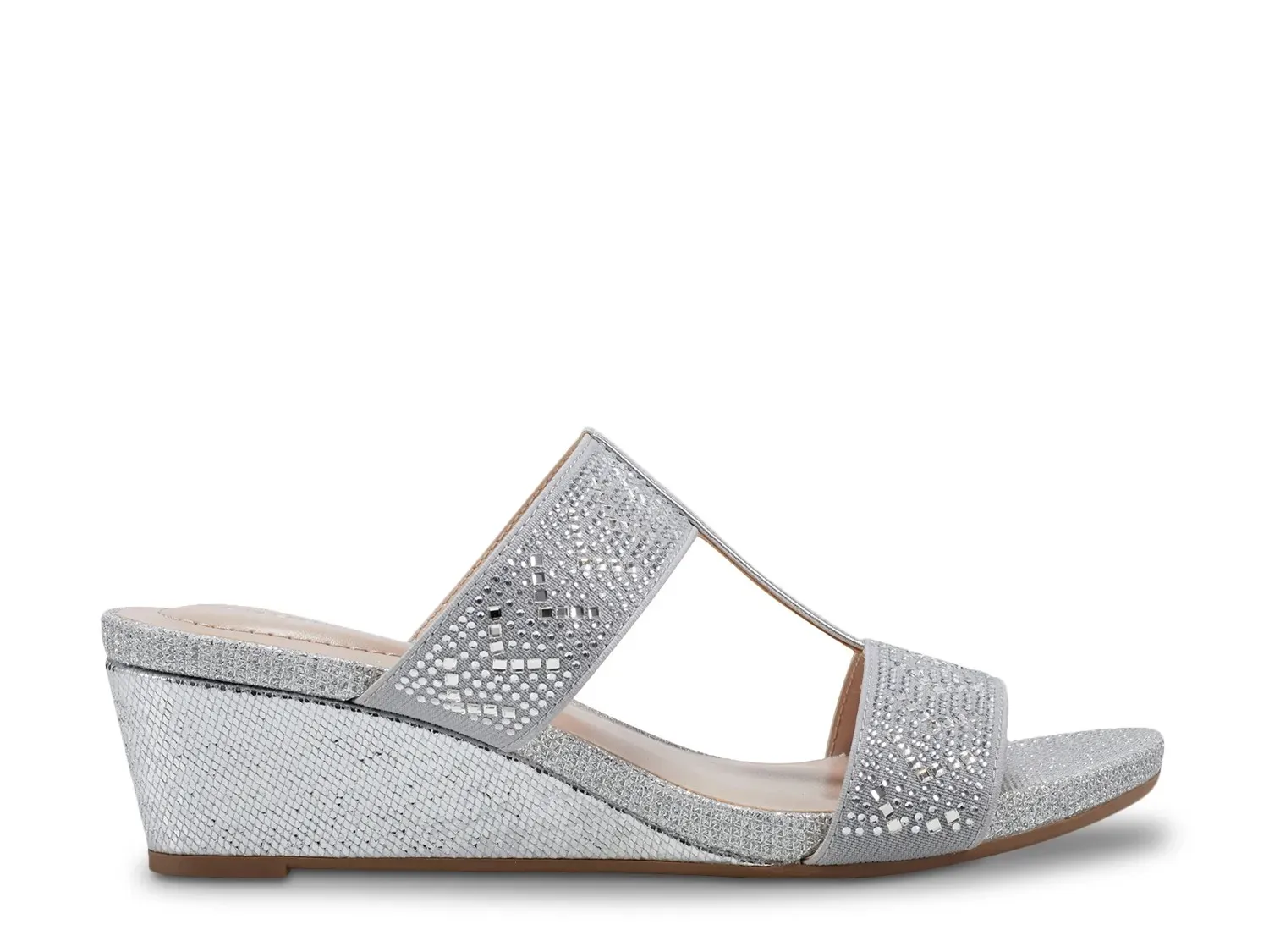 Улучшите образ в теплую погоду с помощью блестящих босоножек на танкетке от Bandolino. Блестящие стразы подчеркивают эту пару, а поролоновая стелька добавляет дополнительную поддержку под ногами.