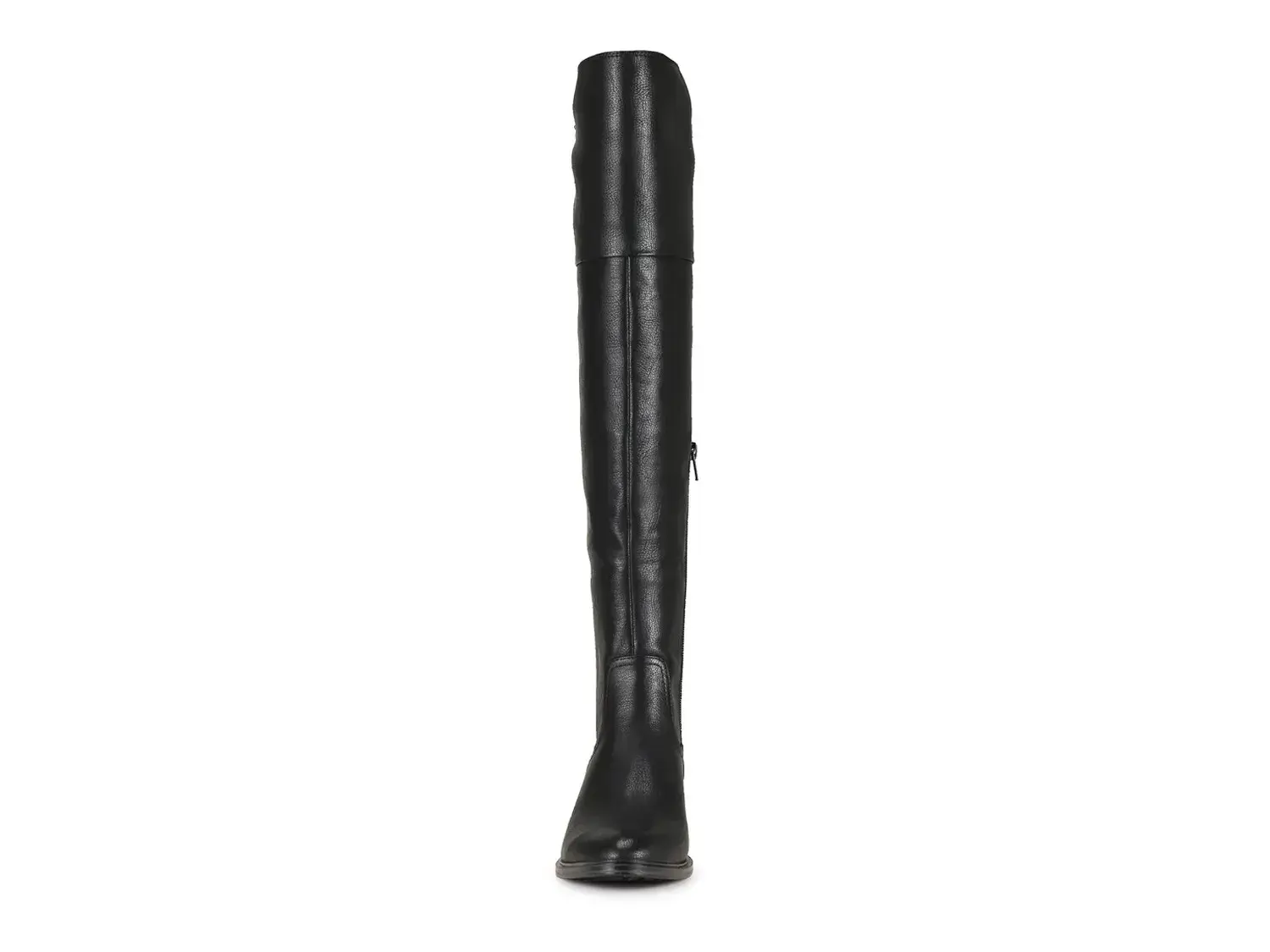 Привнесите нотку роскоши в свой наряд с сапогами выше колена Anika от Baretraps. Ботинки с миндалевидным носком, выполненные в силуэте, вдохновленном верховой ездой, имеют синтетический верх, который придает элегантный вид. Мягкая стелька обеспечивает комфорт в течение всего дня, а гибкая подошва обеспечивает опору. Его швейная нить, изготовленная из переработанных бутылок из-под воды, способствует устойчивому развитию.