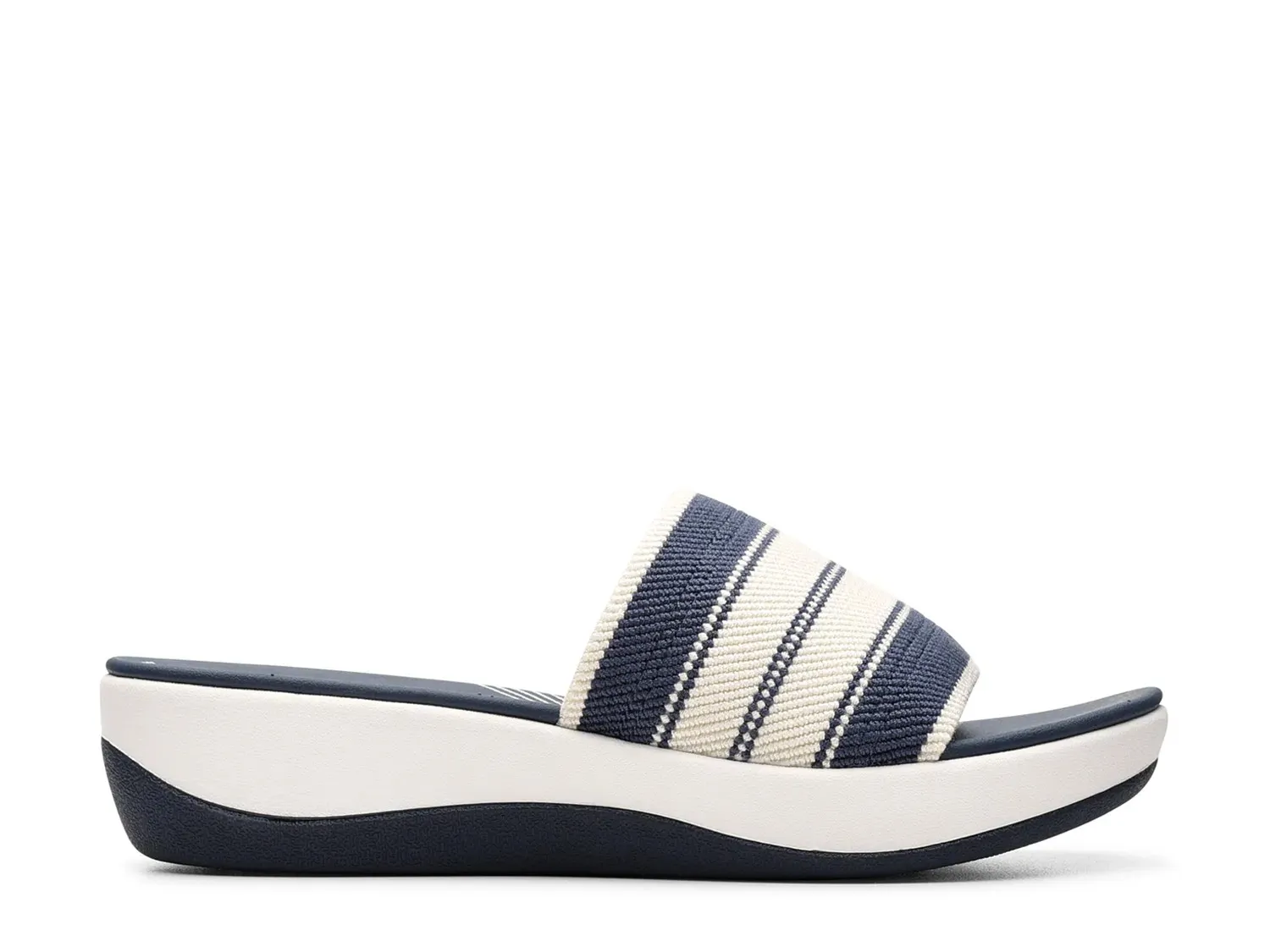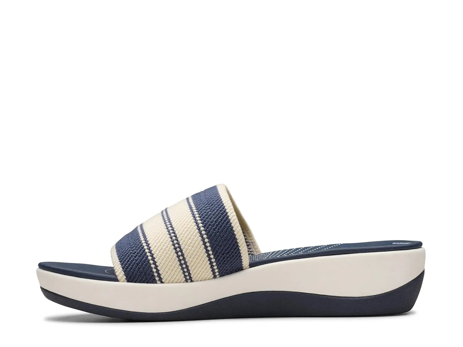 Расслабьтесь в сандалиях Cloudsteppers Arla Hollis. Верх из полосатой ткани обогащает эти сандалии-шлепанцы, а стелька Cushion Soft из пеноматериала обеспечивает комфорт ног в течение всего дня.