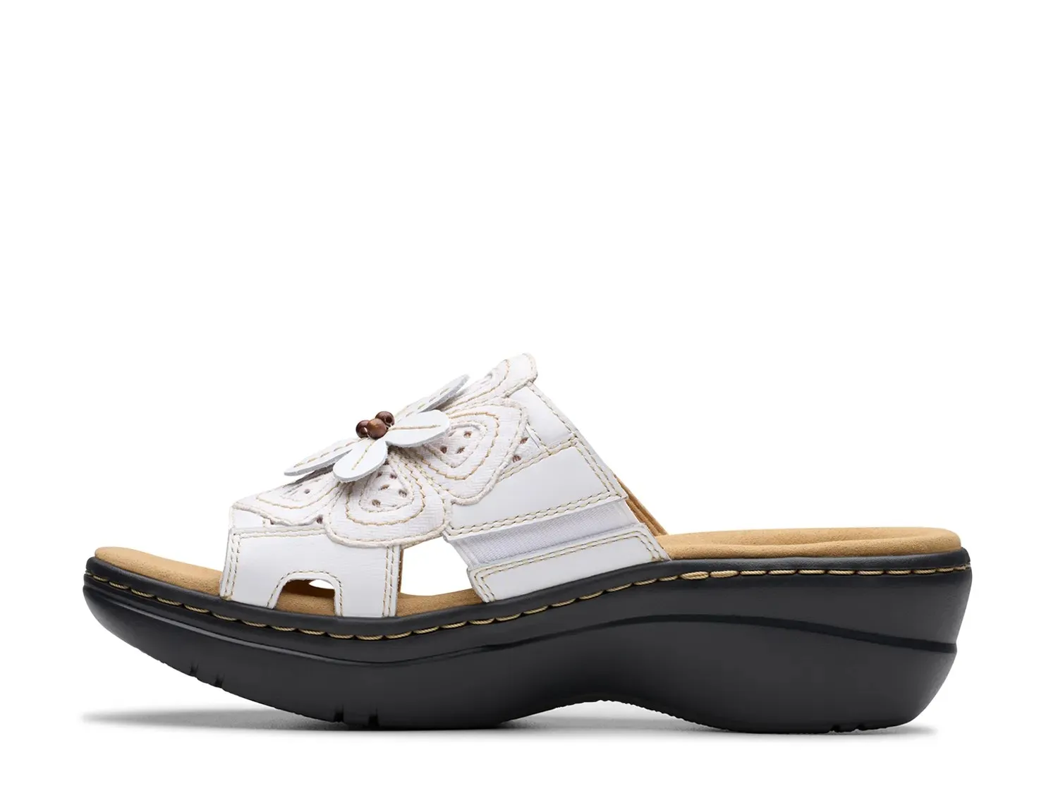 Оживите свой наряд с помощью босоножек на танкетке Merliah Belle от Clarks. Цветочный акцент в виде аппликации на союзке обогащает эти сандалии, а стелька из синтетического пеноматериала Ultimate Comfort с поддержкой свода стопы обеспечивает максимальную амортизирующую поддержку.