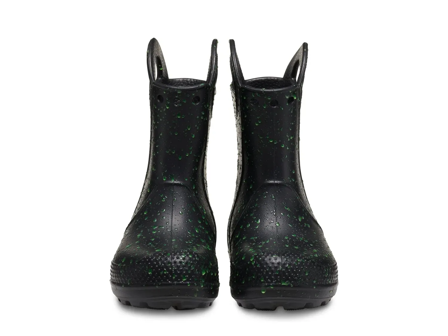 Резиновые сапоги Handle It Glow от Crocs могут повысить их индивидуальность, при этом они не промокают. Эти водонепроницаемые ботинки имеют светящуюся в темноте защиту от капель дождя, которая добавляет удовольствия к их шагам. Большие ручки обеспечивают легкое надевание / снятие, в то время как Iconic Crocs Comfort обеспечивает легкость, гибкость и комфорт на 360 градусов.