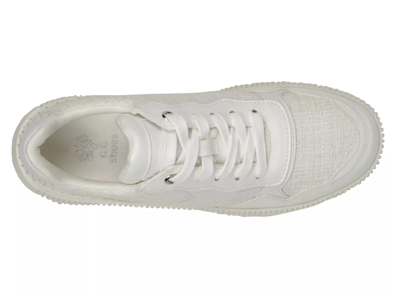 Добавьте стильных деталей в свой спортивный образ с помощью кроссовок Calico от GC Shoes. Спортивный силуэт украсит ваши повседневные ансамбли благодаря мерцающей ткани, ребристой платформе и каблуку на танкетке.