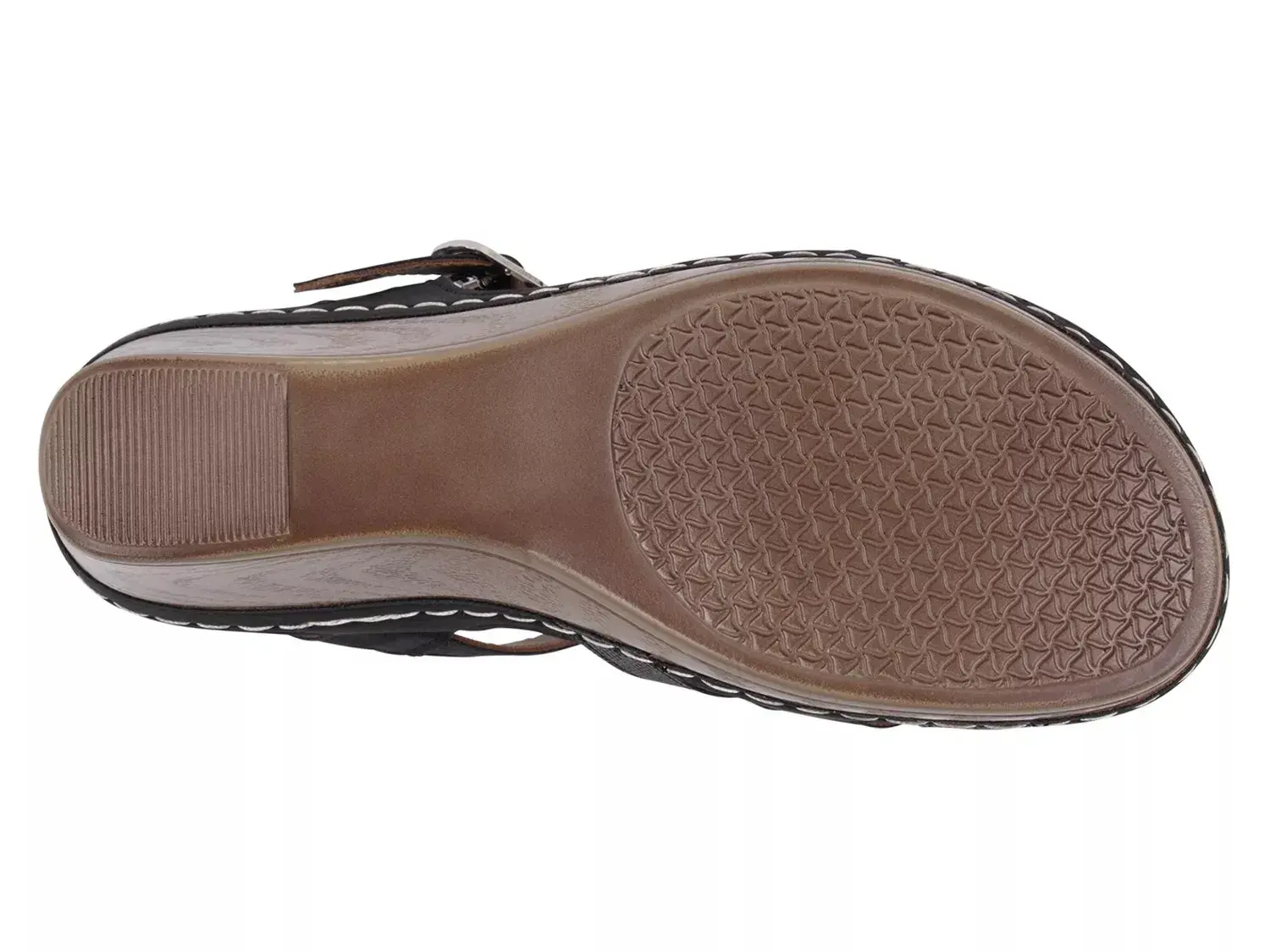 Босоножки на танкетке Darry от Good Choice украшены тонкими деталями, вырезанными лазером, на переплетающихся ремешках для современного вида. Плюшевая стелька поддерживает каждый шаг.