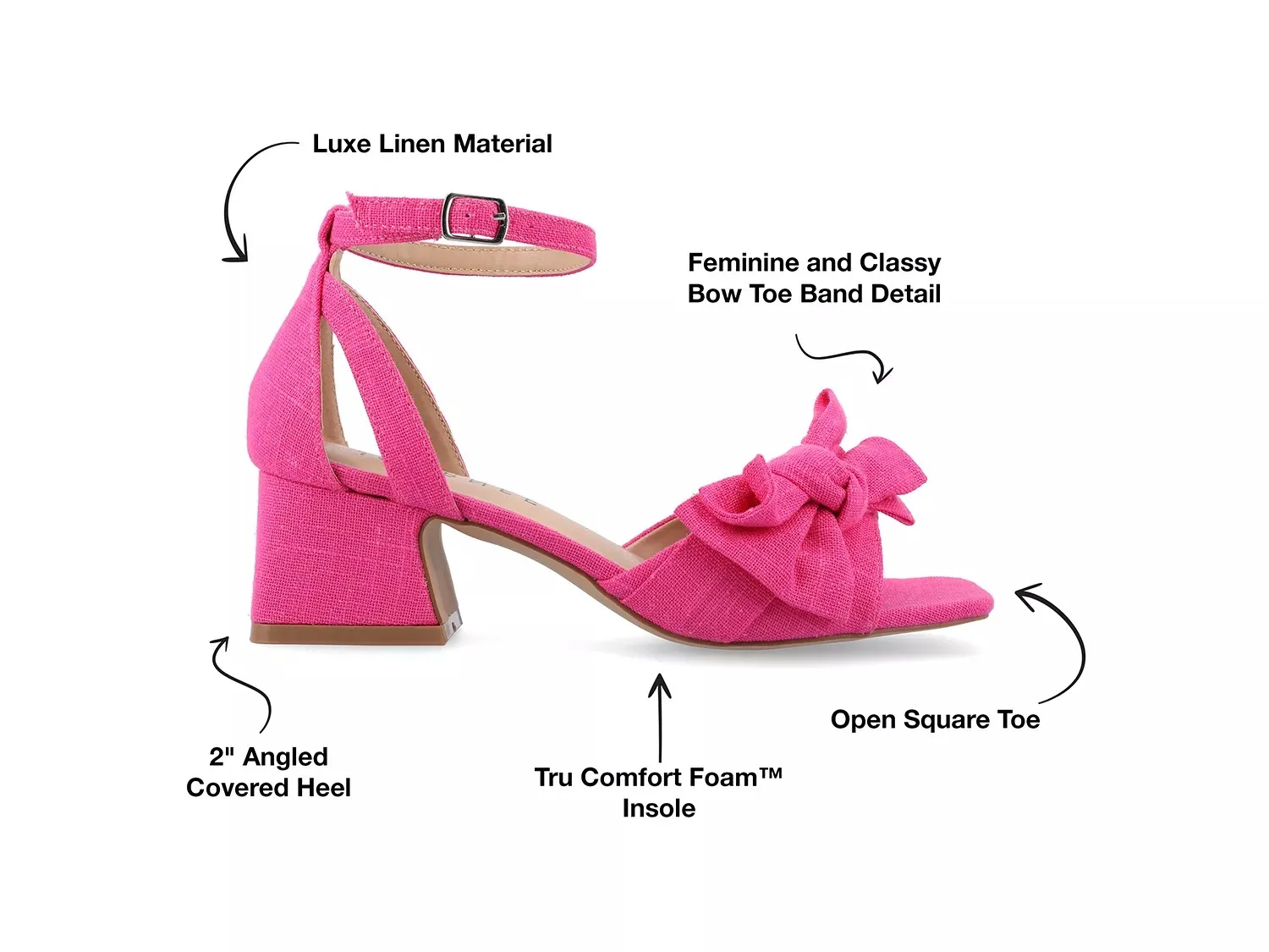 Хотите вывести свой стиль на новый уровень? Выберите босоножки Zevi от Journee Collection. Фактуры из льняной ткани, вневременность акцента в виде галстука-бабочки или сказочность скошенного каблука - что тут не разглагольствовать об этих босоножках с квадратным носком? С пеной Tru Comfort Foam вы можете наслаждаться комфортом в течение всего дня.