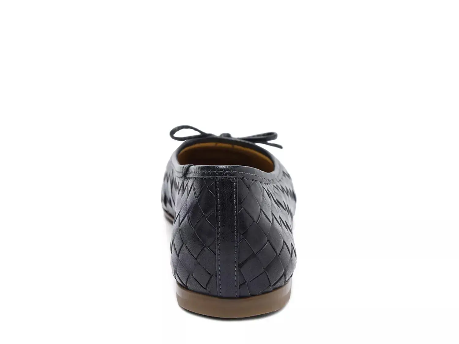 Окунитесь в непринужденный стиль и оптимальный комфорт балеток Gwynn от Bernardo. Тканый верх из кожи растительного дубления обеспечивает устойчивый износ и улучшает текстуру этого слипона ручной работы, а бант на носке повышает его привлекательность.