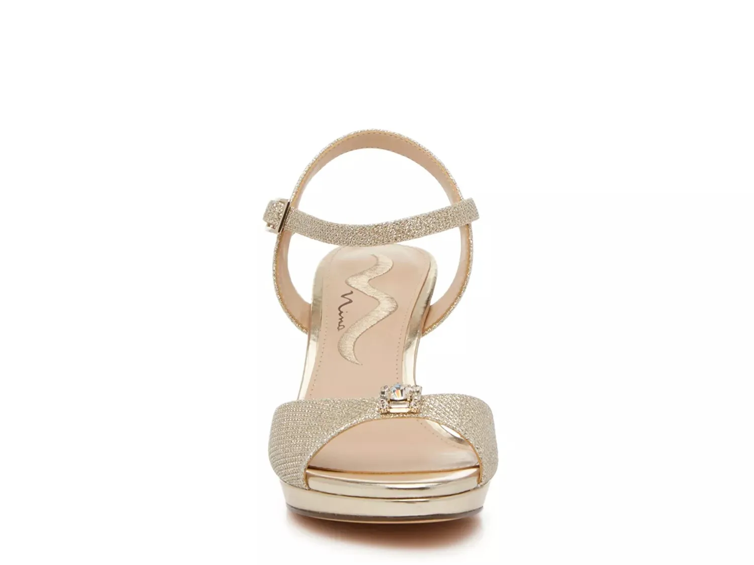Выделяющиеся фасоны заслуживают сверкающего аксессуара. Дополните свой сандалии Neraida от Nina. Эта полированная пара, созданная с мерцающим верхом, акцентом со стразами вдоль носка и золотистым оттенком, поможет вам сиять ярко.