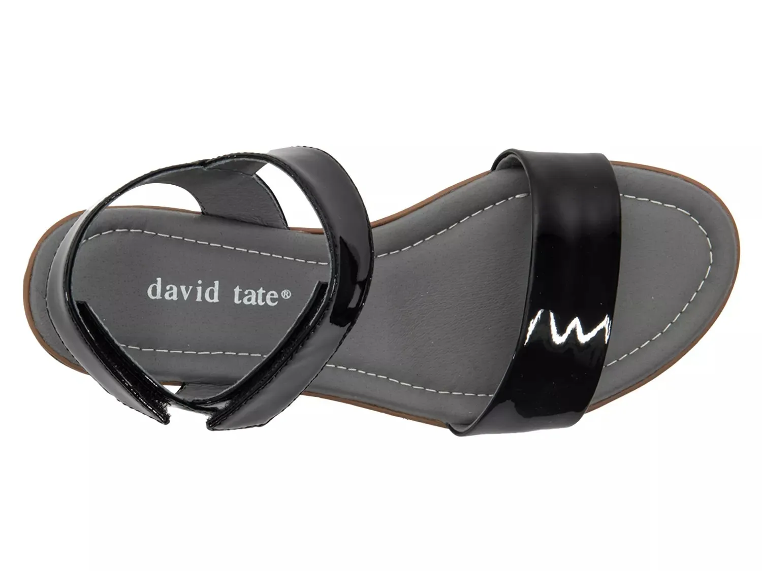 Босоножки David Tate Samba на танкетке, черная лакированная кожа