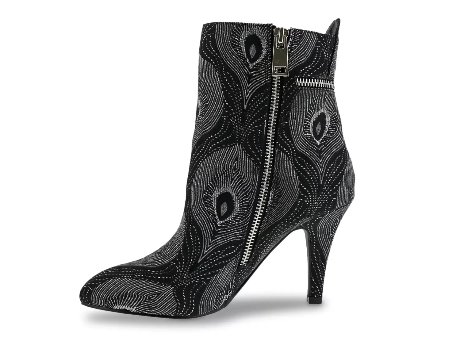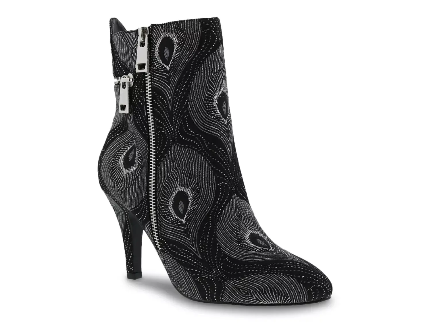 Ботильоны Claudette от Bellini могут придать вашему ансамблю вычурный вид. Завораживающие павлиньи принты и искусственные наружные молнии привлекают внимание к этим ботильонам с миндалевидным носком. Подходящий зауженный каблук обеспечивает элегантный подъем.