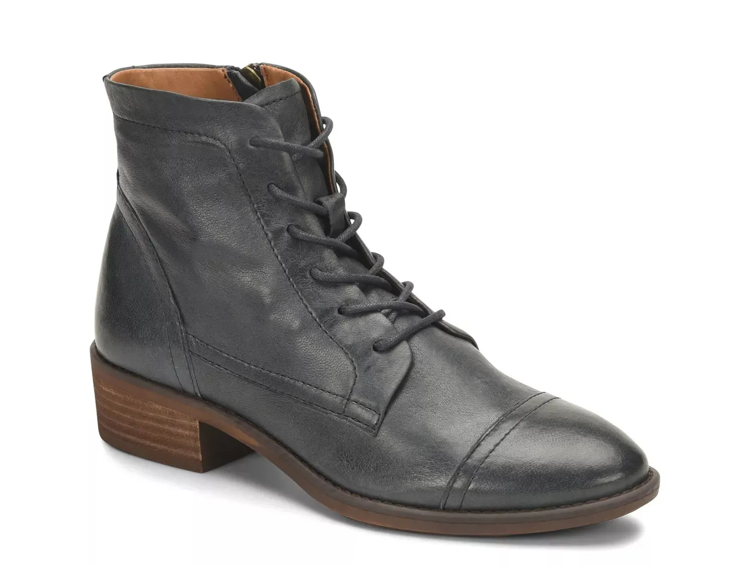 Когда погода становится прохладной, наденьте ботильоны Cordia от Comfortiva. Роскошный кожаный верх контрастирует с деревянным каблуком и нескользящей подошвой.