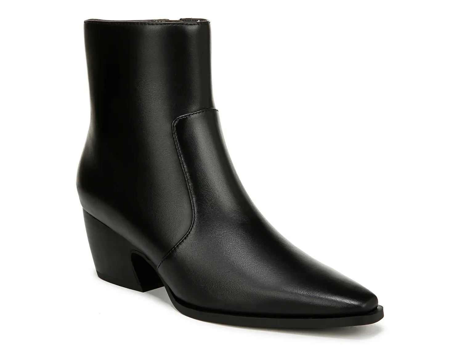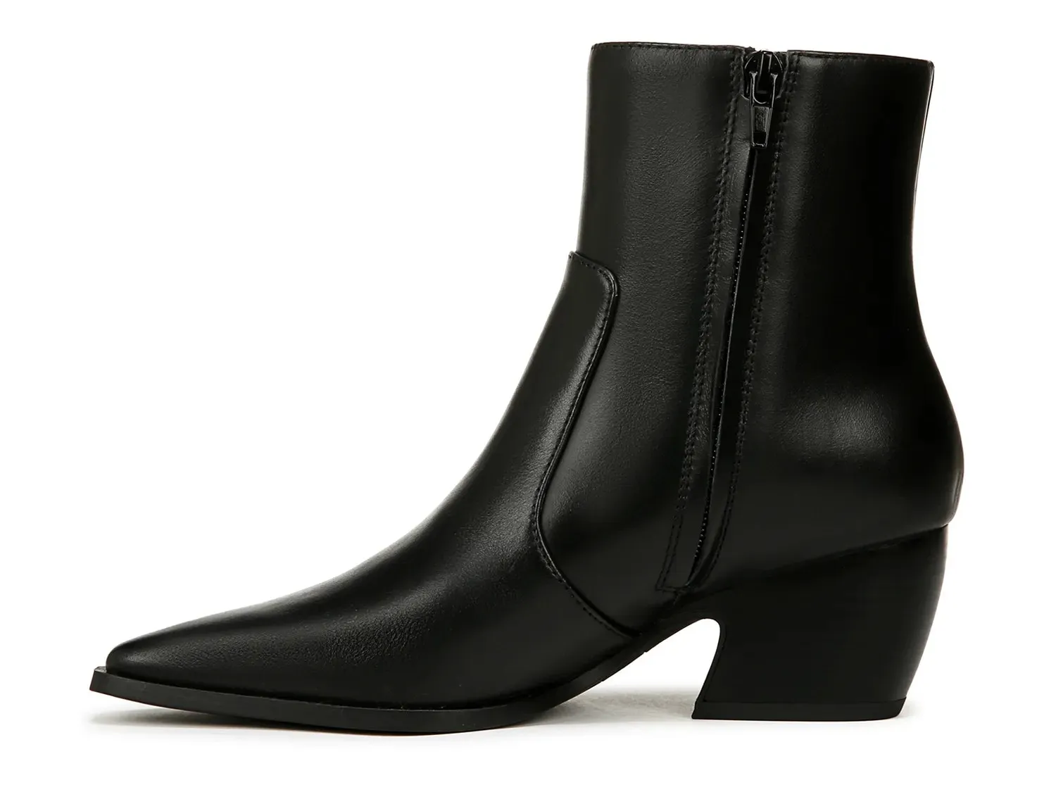 Вдохновитесь сказочными ботинками Franco Sarto Vittorio, вдохновленными вестерном. Кожаные ботинки с элегантным заостренным носком имеют внутреннюю молнию для удобного надевания/снятия. Расклешенный блочный каблук обеспечивает модный подъем.