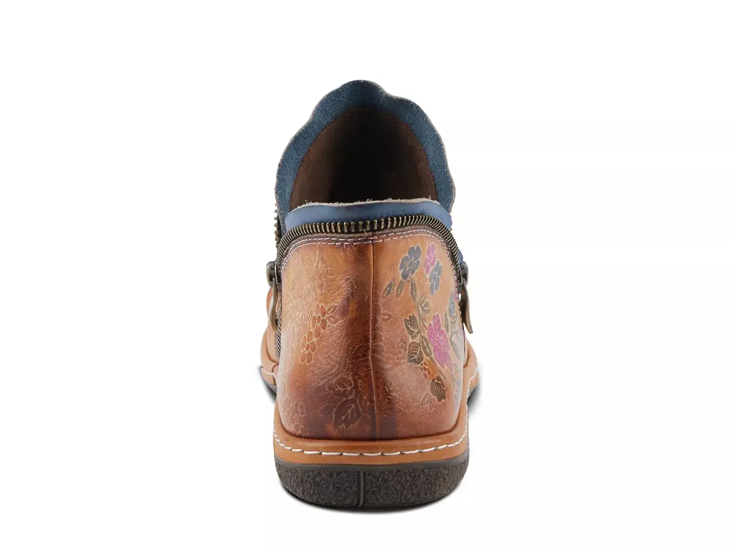 Придайте современный оттенок своему образу с помощью ботинок L'Artiste Chesapeake. Красивые нарисованные цветы на спине придают сказочный вид этим ботильонам из полированной натуральной дубленой кожи верхом и рюшами спереди для непринужденного образа. Гибкая резиновая подошва обеспечивает комфортную ходьбу.
