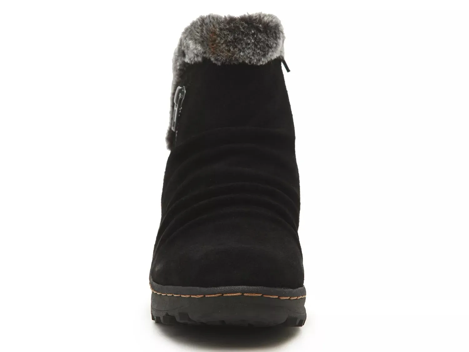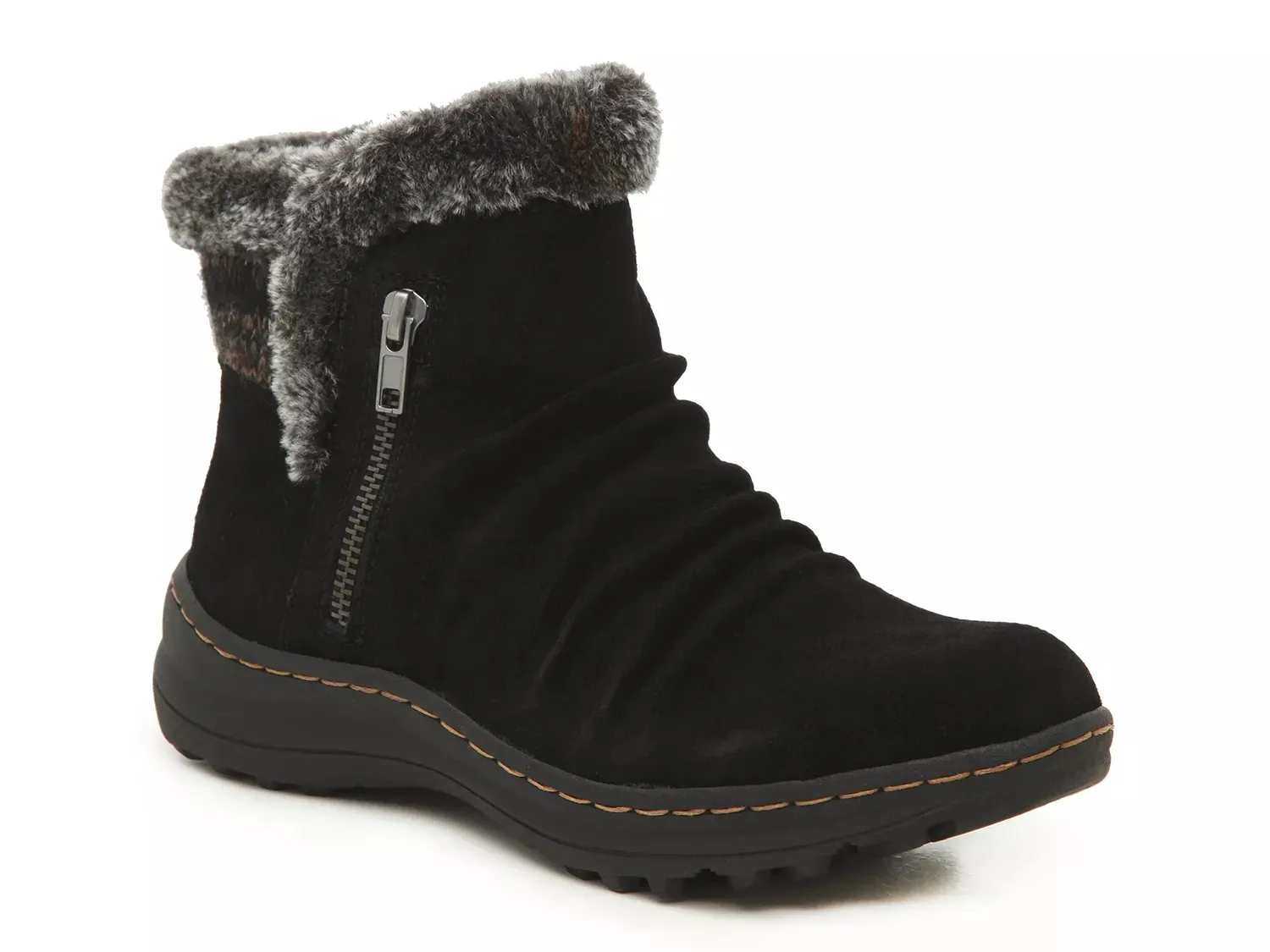 Оставайтесь стильными, борясь с холодом, с ботильонами Acelyn от Baretraps. Эти водостойкие замшевые ботильоны имеют мягкую трикотажную манжету, вдохновленную свитером, и отделаны подкладкой из искусственного меха, обеспечивающей тепло в течение всего дня.