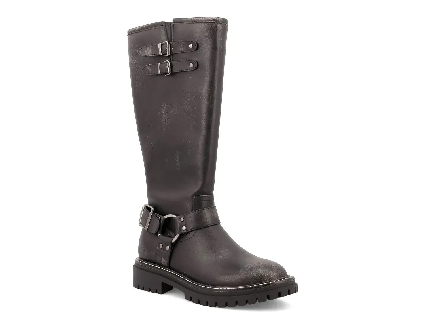 Добавьте нотку остроты в свой образ в прохладную погоду с помощью мотоботинок Dese от Mia. С декоративным ремнем ремня безопасности и пряжками, которые дополняют подошву с выступами для вашей новой пары до колена.