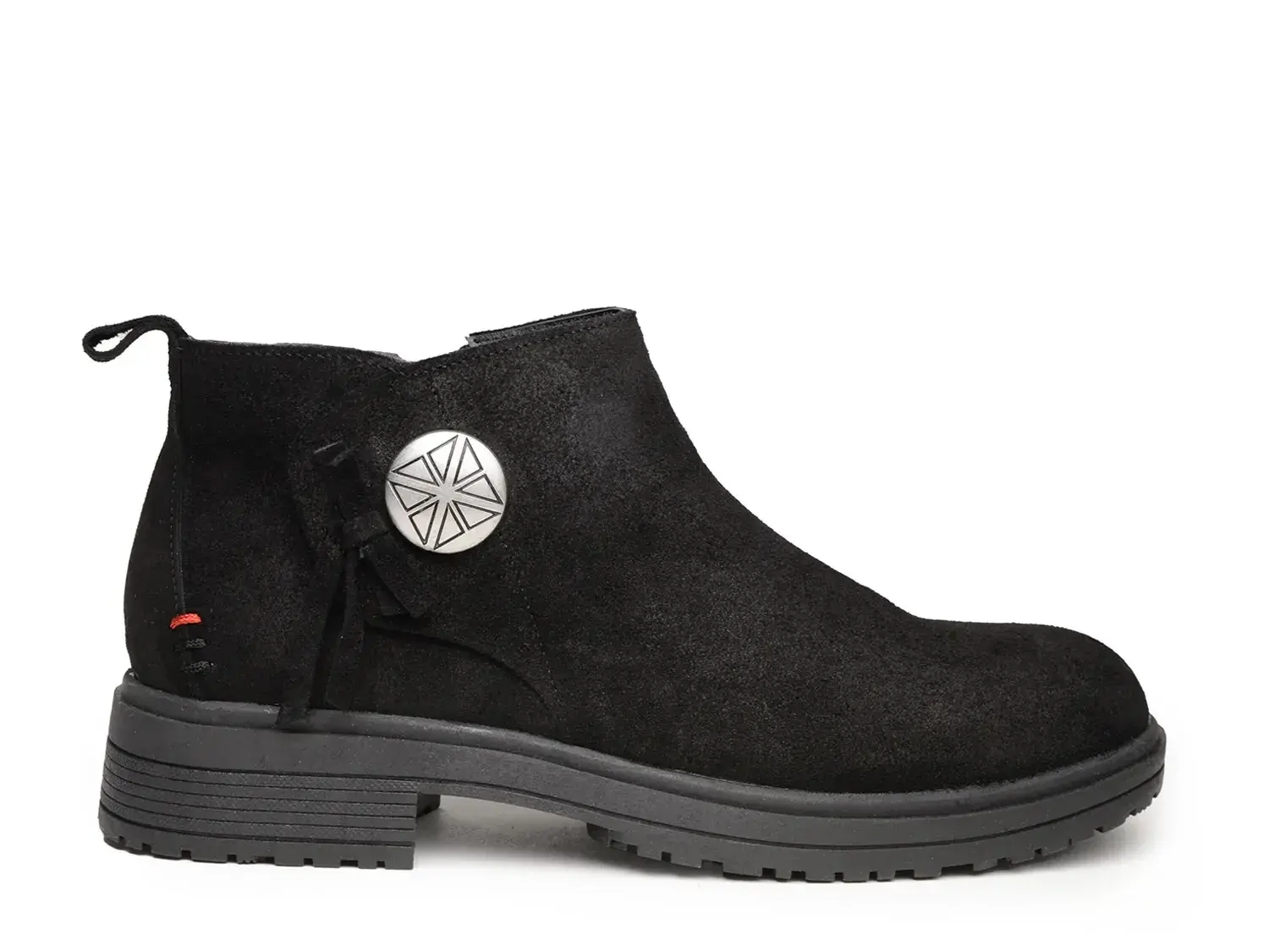 Универсальный стиль и утонченный вид ботильон Minnetonka Joyelle обязательно произведут на вас впечатление. Замшевый верх придает премиальный оттенок этим ботинкам, украшенным декоративными пуговицами и бантиками сбоку для создания очаровательного образа. Резиновая подошва имеет рисунок протектора, разработанный индейской художницей Ханной Стэндстронг для уникального прикосновения и улучшенного сцепления.