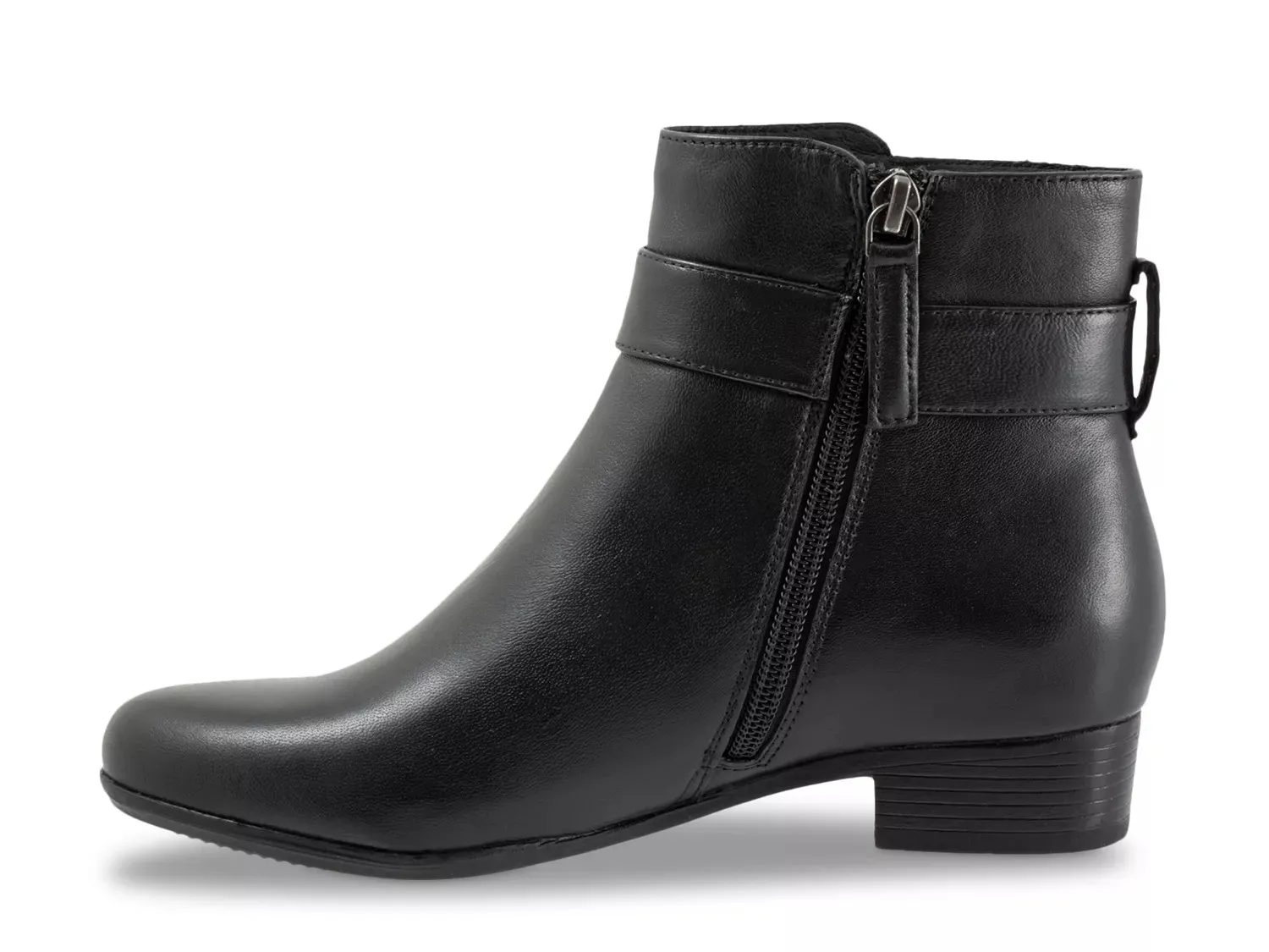 Элегантные и стильные, вы никогда не перестанете впечатлять в ботинках Trotters Melody. Кожаные ботильоны украшены круглыми пряжками, намекающими на роскошь и вневременную привлекательность. Стелька с мягкой подкладкой и дополнительной поддержкой свода стопы обеспечивает комфорт. У вас также есть возможность использовать ортопедические стельки.