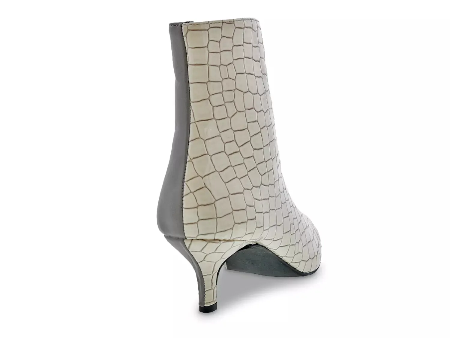 Станьте иконой моды в ботинках Vegas от Bellini. Лакированное тиснение под крокодилового крокодила и гладкий верх придают объемную привлекательность ботильону с острым носом, слегка приподнятому каблуком котенка.