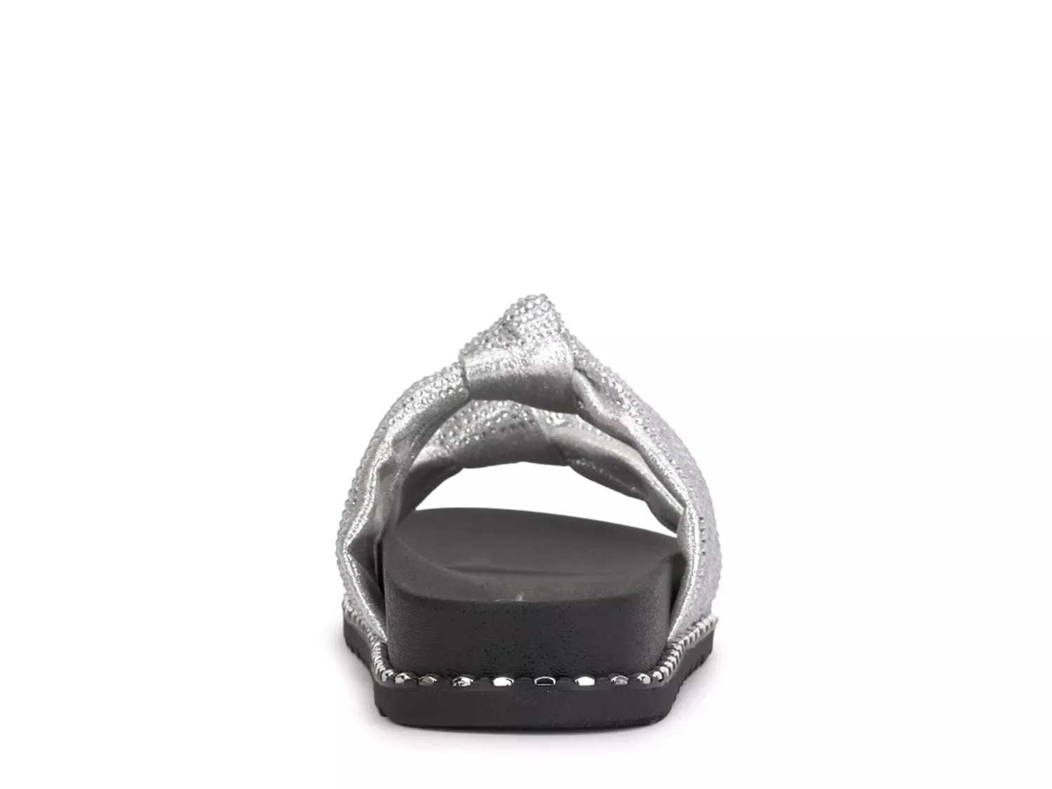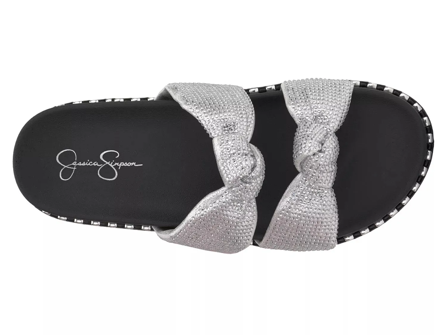 Создайте свой блестящий образ с босоножками Jessica Simpson Caralina. Сандалии шлепанцы увенчаны блестящими вставками со стразами для очарования. Двойные узлы на ремнях придают привлекательный вид, а резиновая подошва на платформе поддерживает вас.