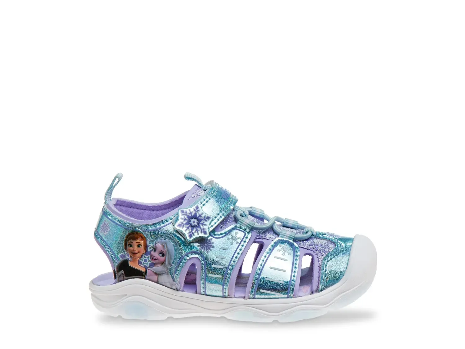 Будь то пикник, детская площадка или вечеринка у бассейна, сандалии Frozen от Disney могут стать ее спутником на весь день. Босоножки с закрытым носком украшены графикой Анны и Эльзы из мультфильма Disney «Холодное сердце», которая может взволновать вашу маленькую девочку. Еще больше волнения добавляет светящийся дизайн, который подсвечивается при каждом шаге.