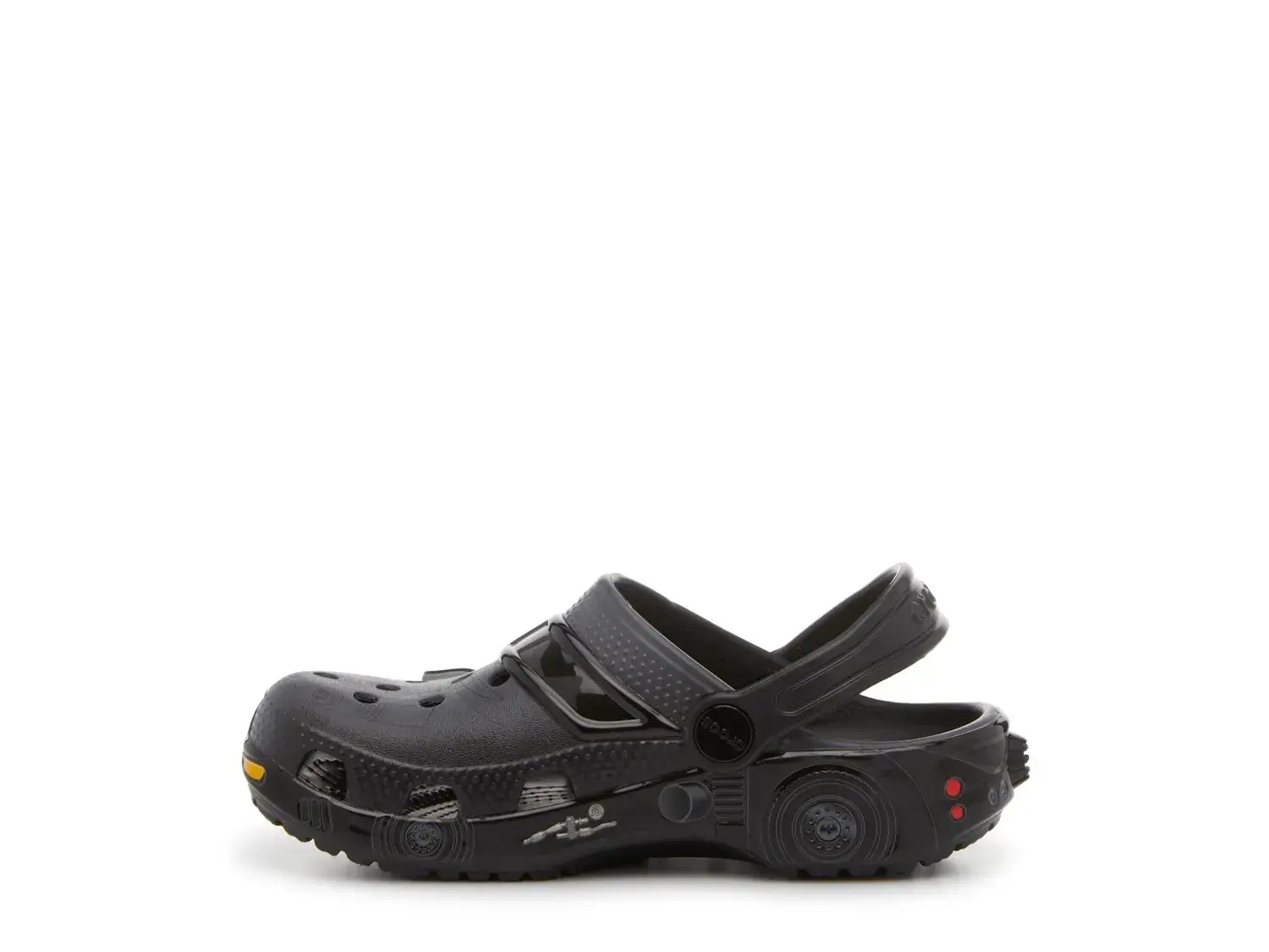 Ваш малыш получит максимум удовольствия от своего повседневного образа с сабо Batman Batmobile Classic от Crocs. Эта игривая пара создана так, чтобы выглядеть как автомобиль для побега любимого супергероя вашего ребенка. Плюшевые поролоновые прокладки украшают их шаги, а верх украшен популярной эмблемой мультяшного персонажа. В комплекте с замысловатыми деталями вдоль межподошвы, на которых изображены детали культового автомобиля.