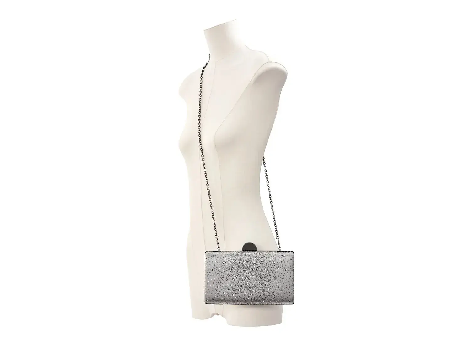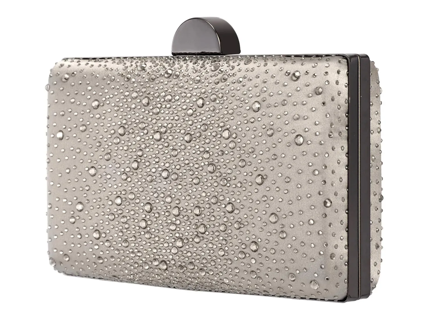 Клатч Mindy от Lady Couture достаточно универсален, чтобы дополнить любой вечерний образ. Атлас, украшенный стразами, добавляет блеска, а съемный ремешок-цепочка позволяет носить рок-боди!