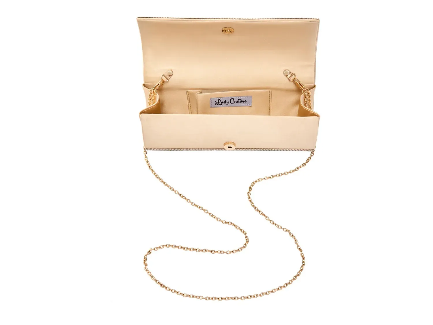 Клатч Tina от Lady Couture добавляет идеального блеска. Сатин, украшенный стразами, переливается со всех сторон, а съемный ремешок-цепочка позволяет играть как кроссбоди!