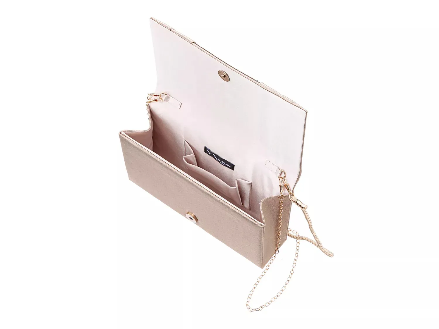 Клатч Elleme от Nina оснащен плиссированным клапаном со стразами для идеального блеска. Скрытый ремешок из звеньев рабицы и внутренний накладной карман придают этой компактной сумочке универсальность.