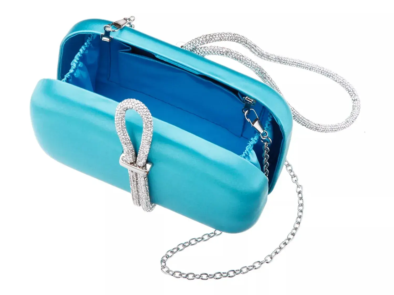 Оставайтесь на шаг впереди тенденций с клатчем Lauren от Nina. Эта компактная сумочка оснащена шнуром, украшенным стразами, который оборачивается вокруг внешней стороны и сверкает со всех сторон.