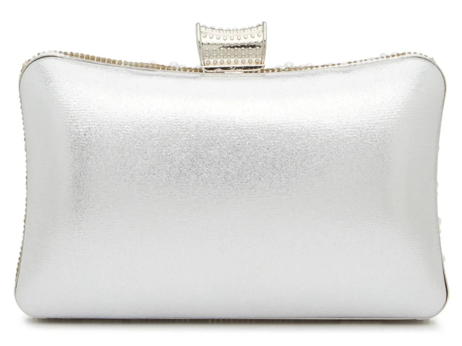 Улучшите свой образ с помощью этого украшенного аксессуара. Клатч Ariel от Kelly & Katie инкрустирован искусственным жемчугом и деталями со стразами, придающими нотку элегантности. Этот универсальный стиль поставляется со съемным ремешком из звеньев рабицы, который легко превращает его в кроссбоди.
