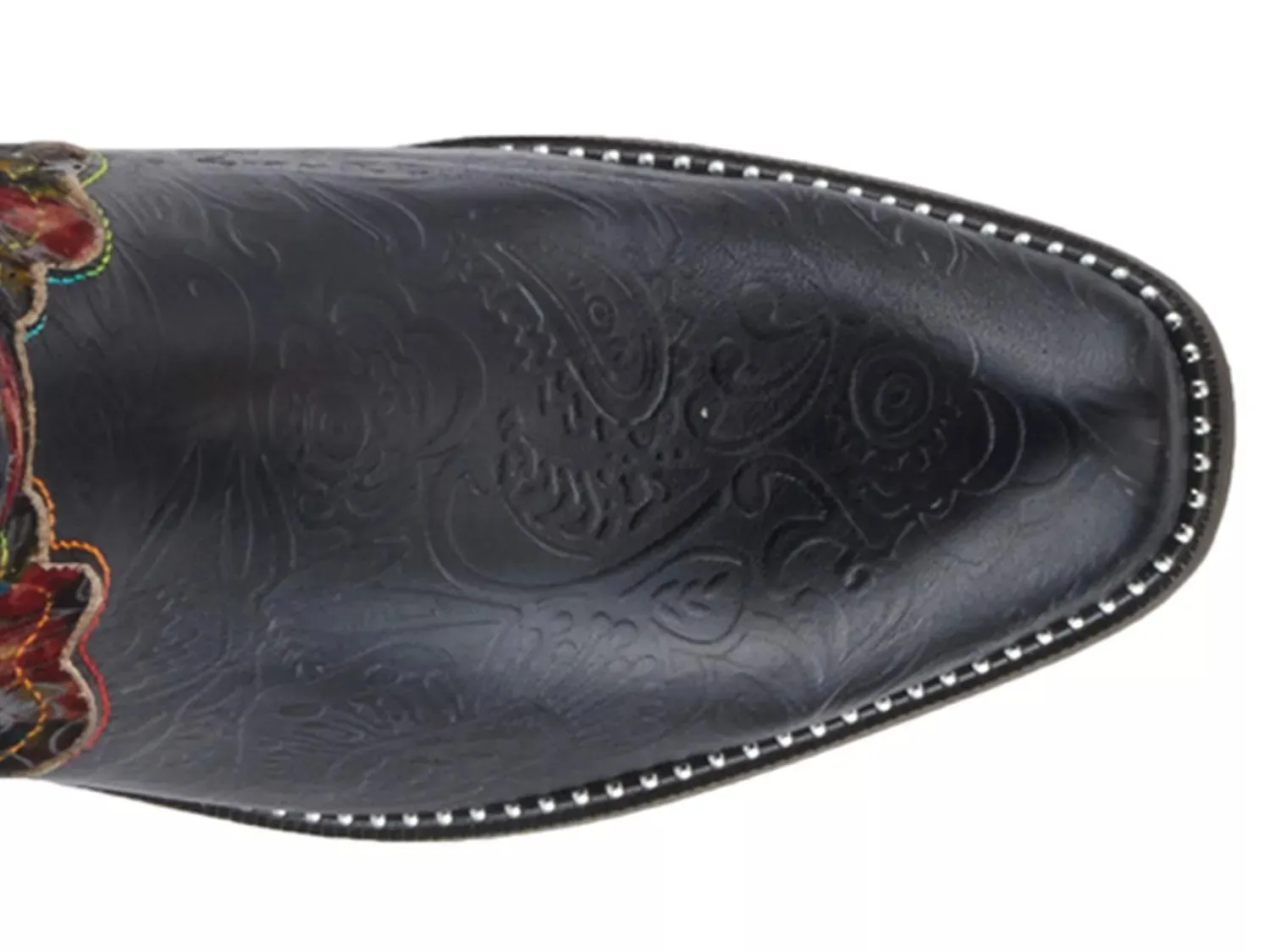 Продемонстрируйте свое утонченное чувство стиля с ковбойскими сапогами L'Artiste Rodeo Queen. Будь то замысловатые рельефные узоры спереди и на каблуке, бархатный голенище с цветочным принтом или деревянный каблук, эти высокие сапоги обязательно привлекут внимание со всех сторон.