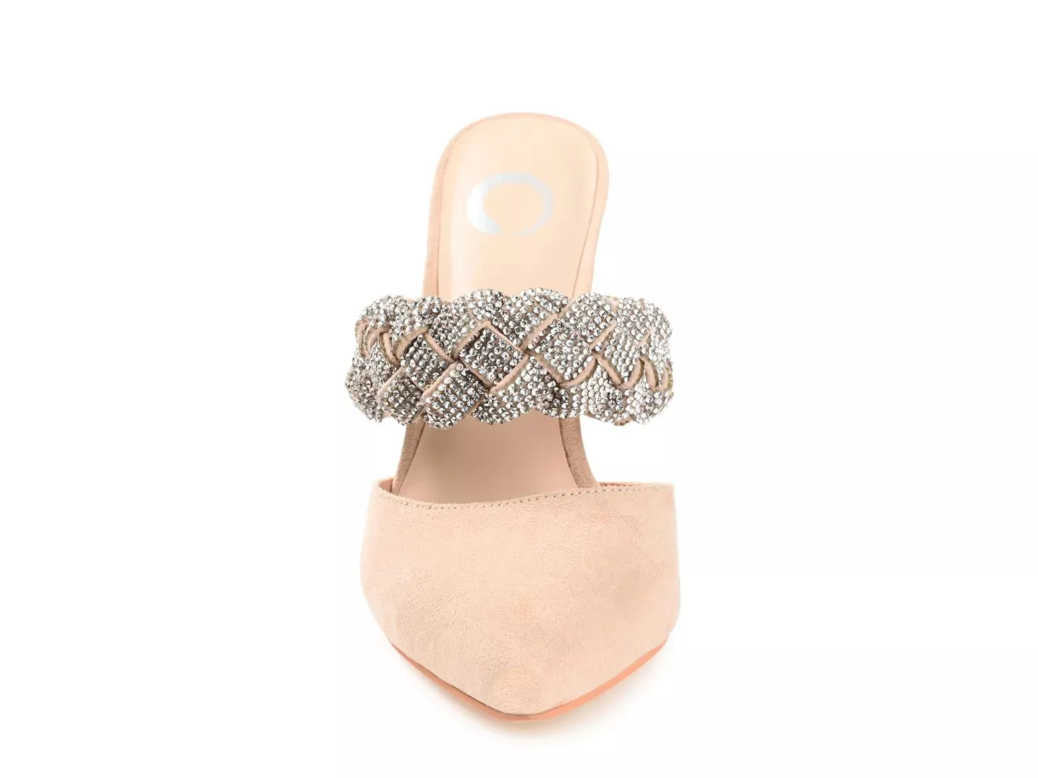 Увеличьте жару, расхаживая на муле Hazzl из коллекции Journee. Этот силуэт в стиле туфли-лодочки с острым носом выполнен из плюшевой веганской кожи и дополнен плетеной лентой со стразами, которая усилит ваш гламурный фактор.