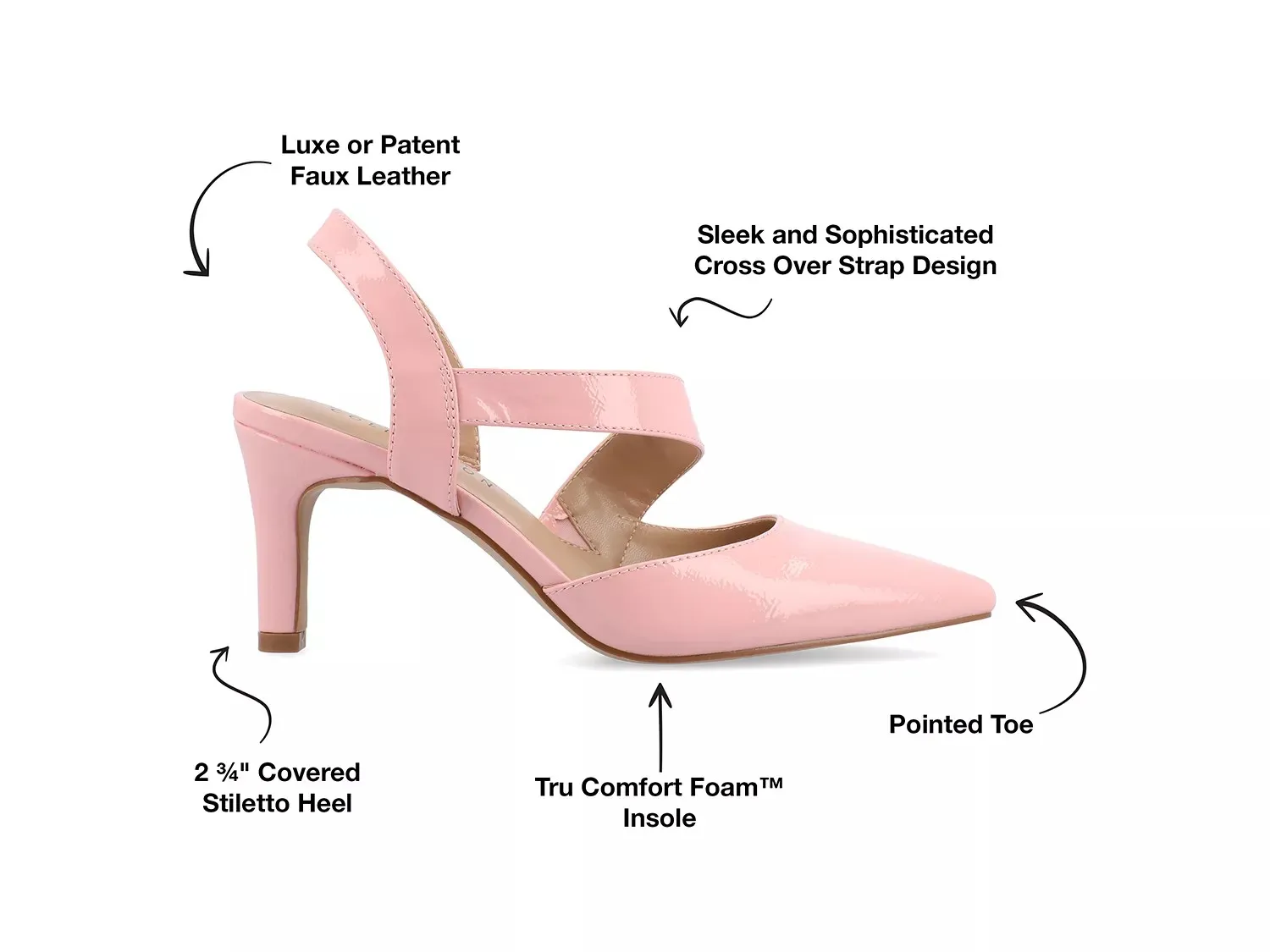 Выглядите потрясающе великолепно в туфлях-лодочках Journee Collection Scarlett. Асимметричный ремешок в виде союзки придает туфли-лодочкам с заостренным носом элегантный стиль, дополненный нежной стелькой из пеноматериала Tru Comfort.
