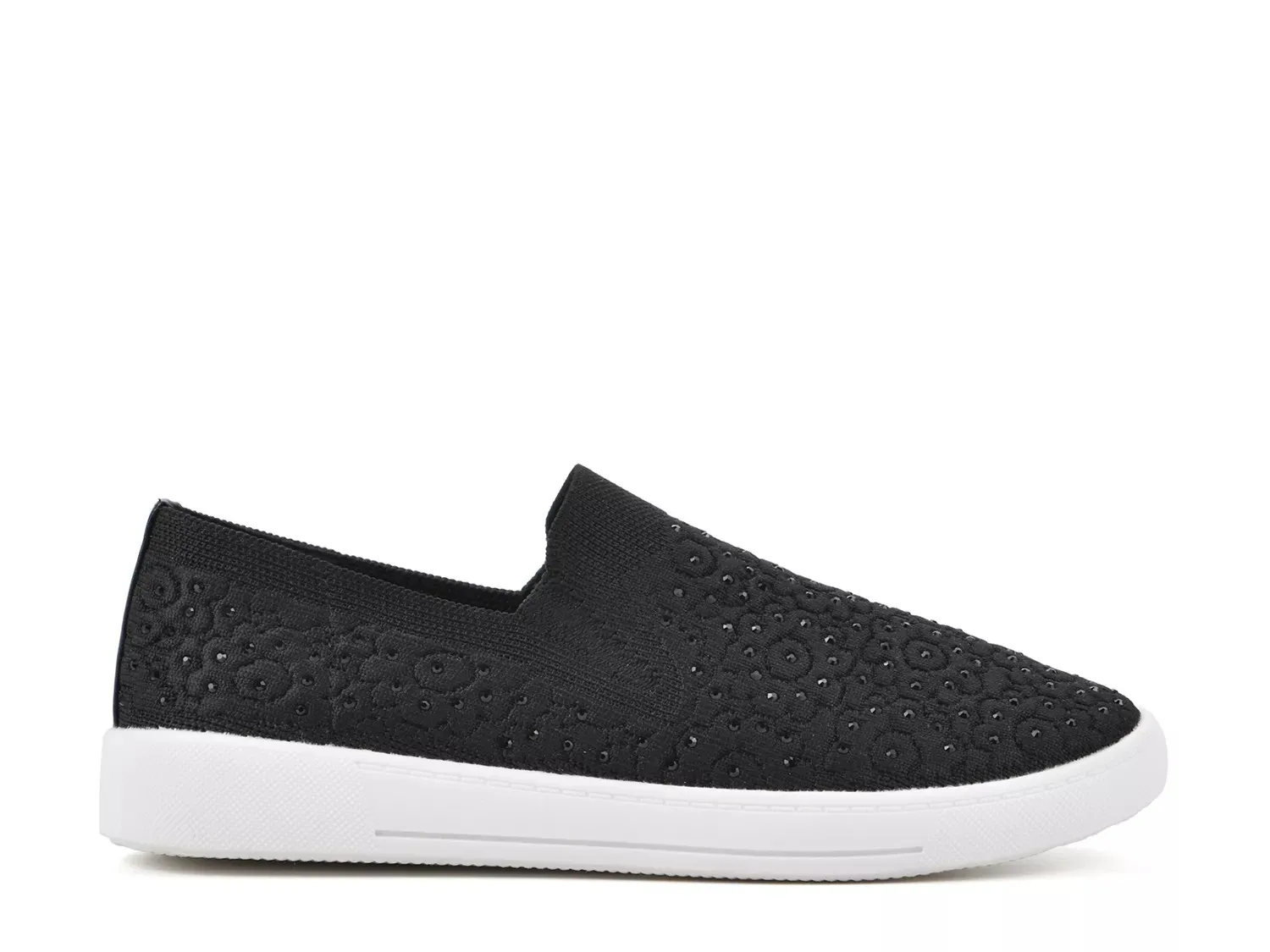 Если вам когда-нибудь понадобится дополнительное ослепление, обязательно наденьте кроссовки White Mountain Unit. Элегантный стеганый верх с цветочным принтом и сверкающим украшением из страз обязательно покорит сердца каждого.