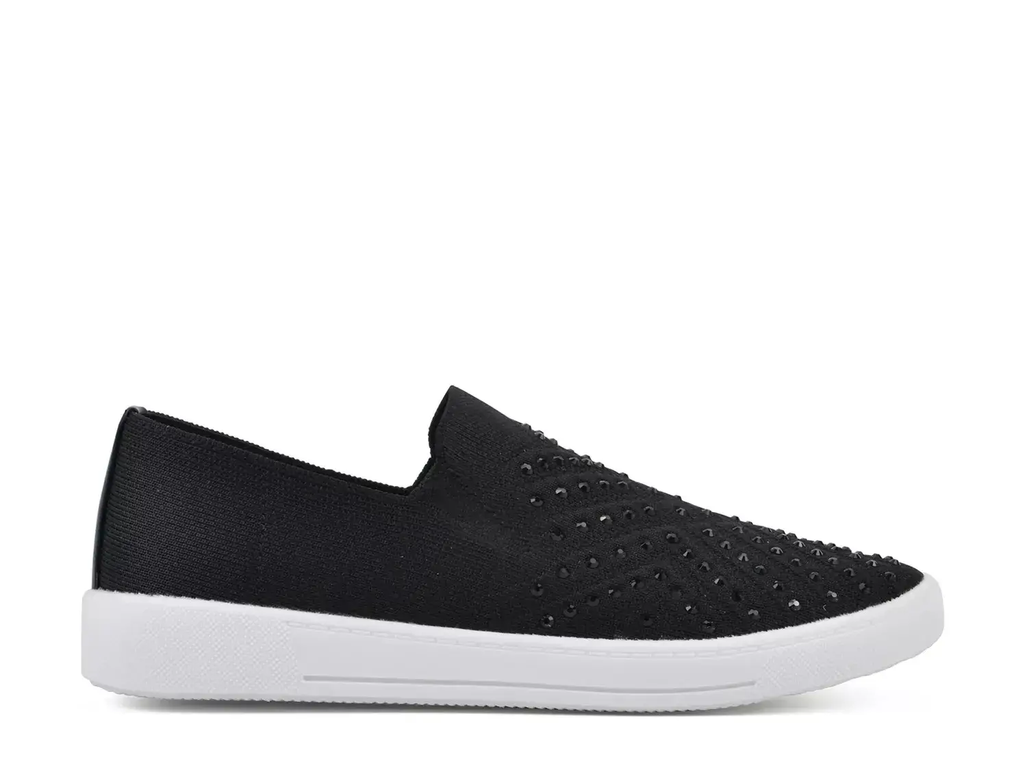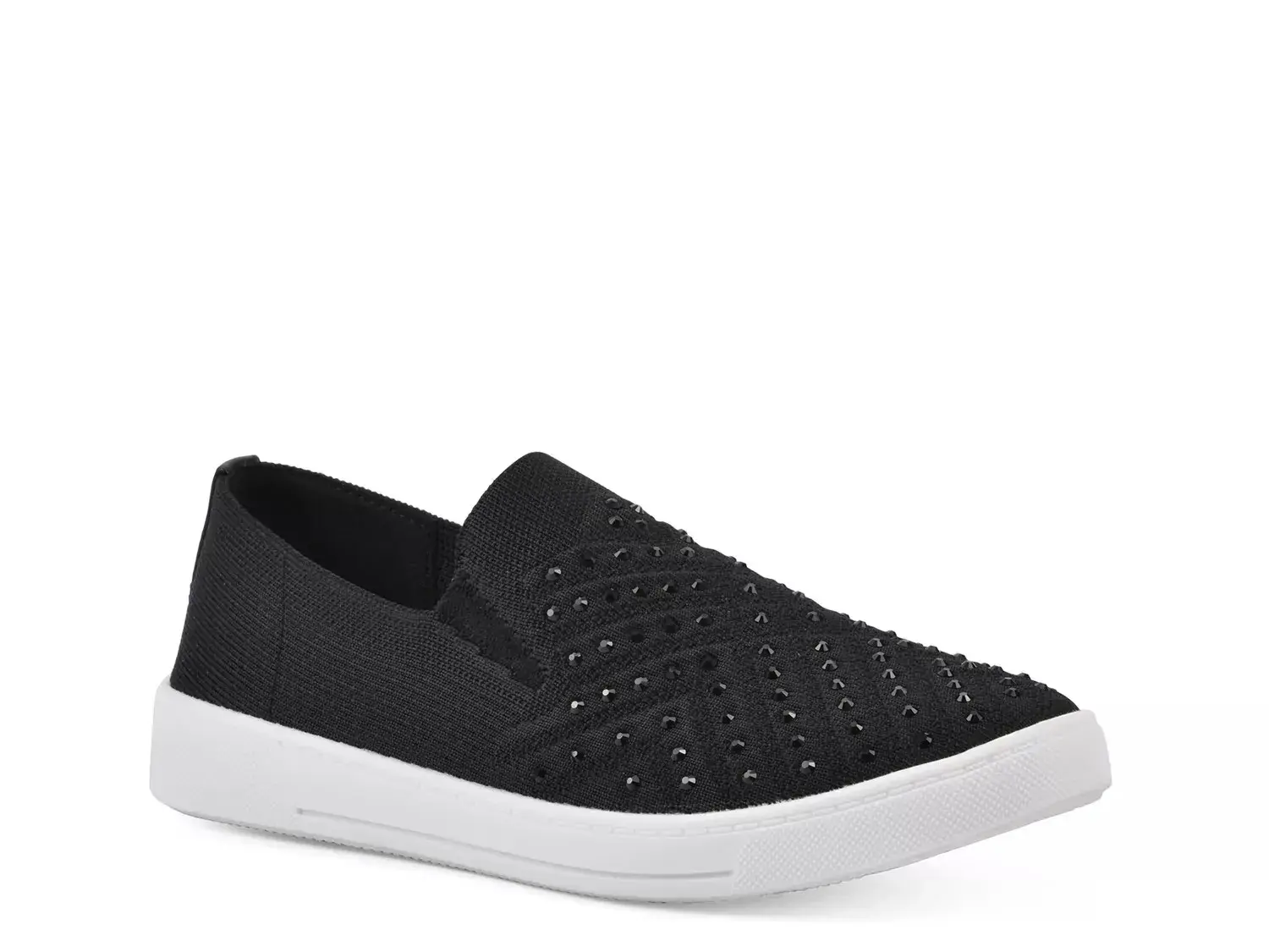Хотите выглядеть спортивно и блестяще одновременно? Выбирайте кроссовки без шнуровки Upbring от White Mountain. Плетеный трикотажный верх придает стиль мягким кроссовкам, украшенным дразнящими украшениями со стразами.