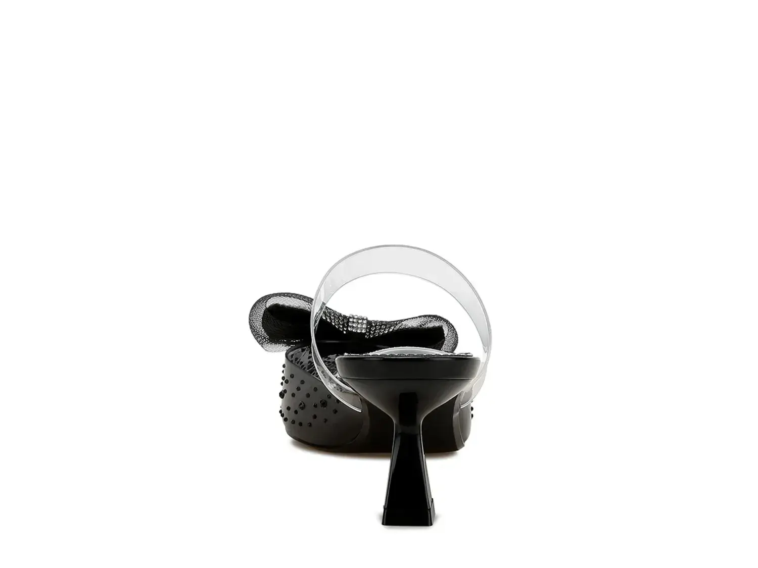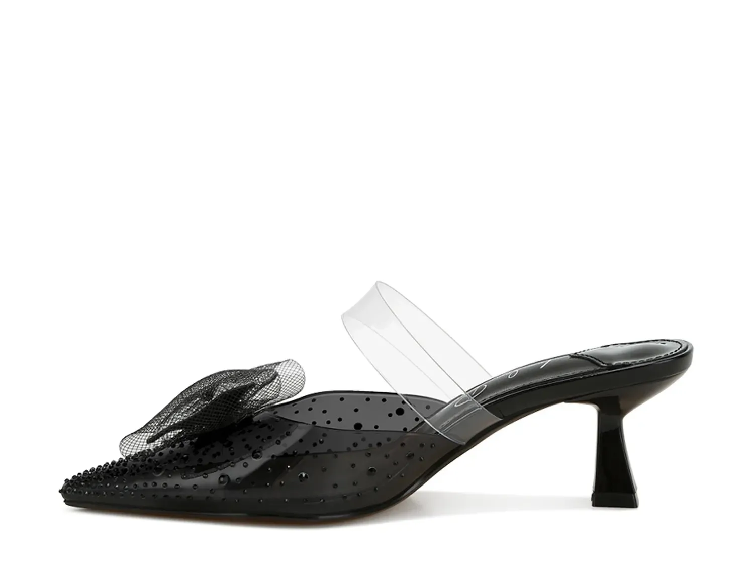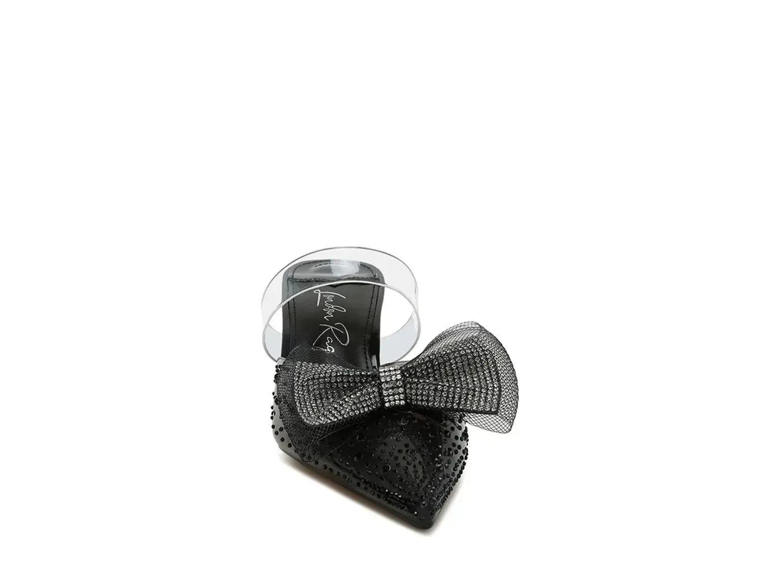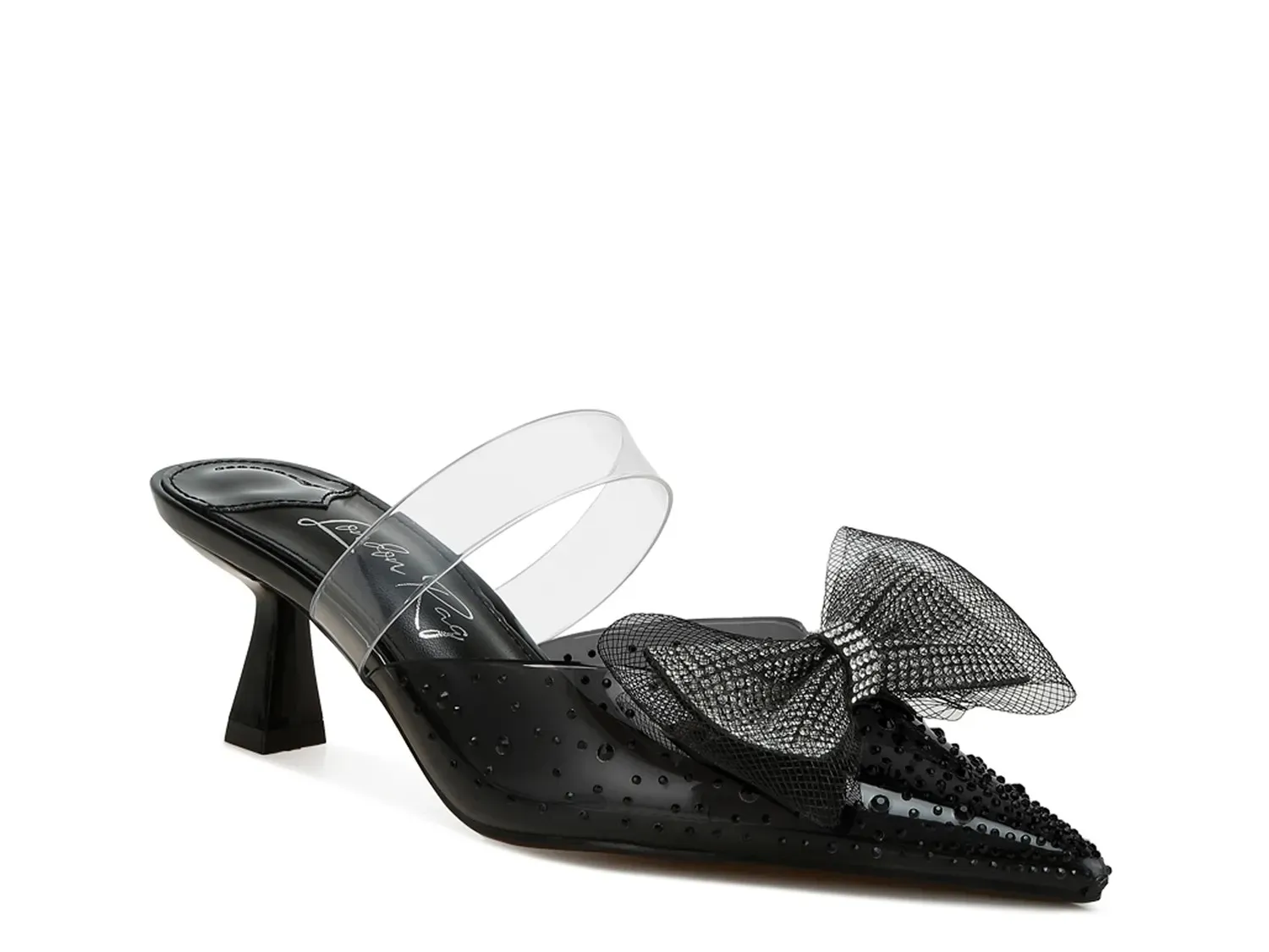 Осмельтесь блистать в лондонском муле Rag Freja. Эта пара на каблуке с котенком отличается гладким люцитовым дизайном с мерцающими стразами и бантом, который привлекает внимание при каждом шаге.