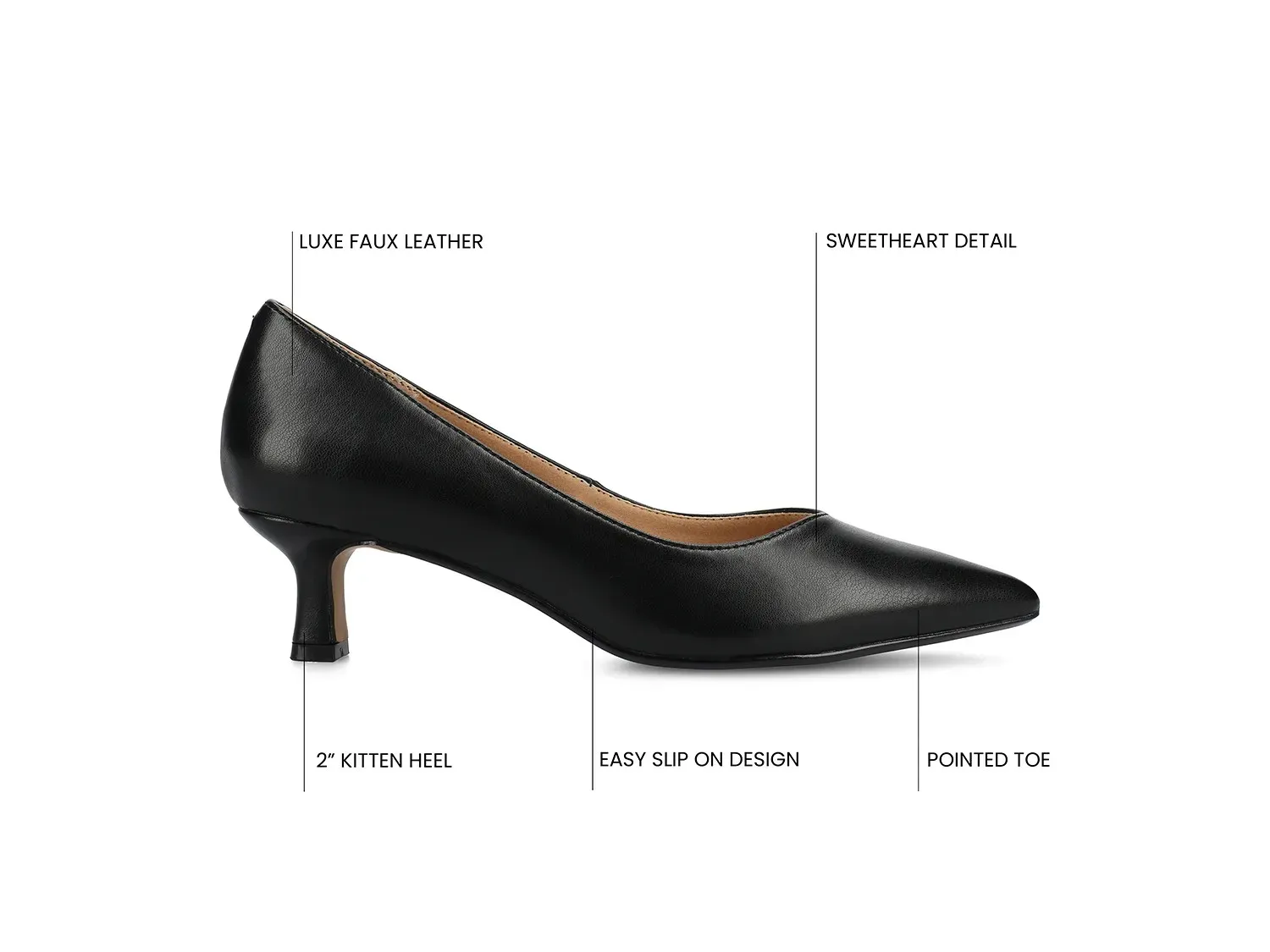 Туфли-лодочки Pammie из коллекции Journee — это классика. Идеальная пара для профессиональных вещей или официальной одежды, этот стиль отличается скромным каблуком котенка и гладким заостренным носком.