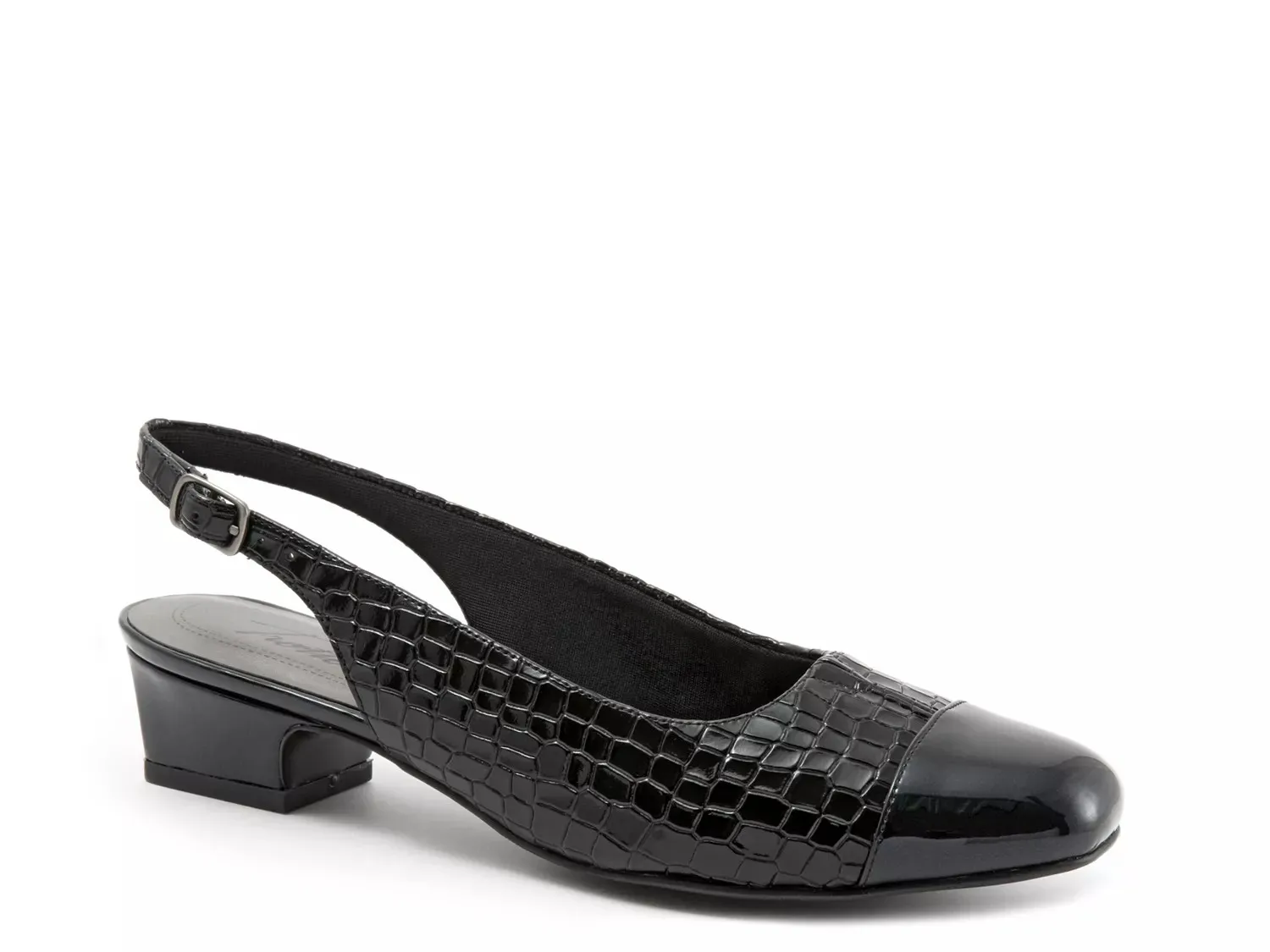 Благодаря противоударной мягкой ножке и антимикробной подкладке, в насосе Dea от Trotters есть все, что вам нужно! Этот слингбэк легко перейдет с рабочей недели на выходные.