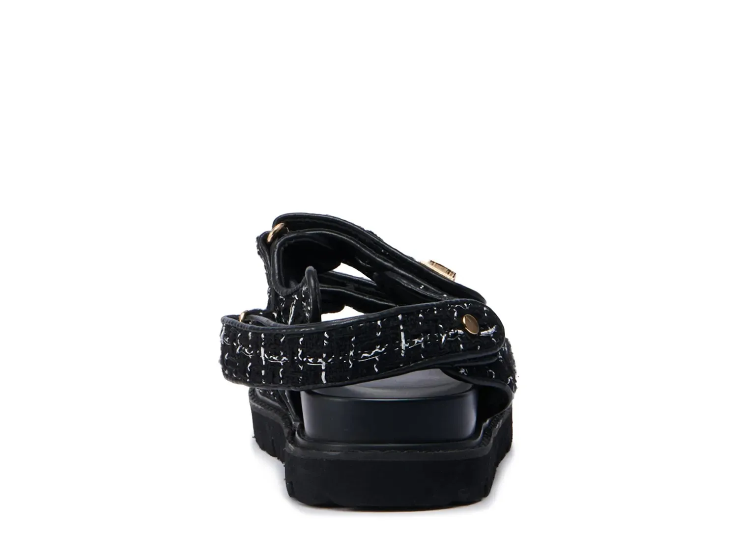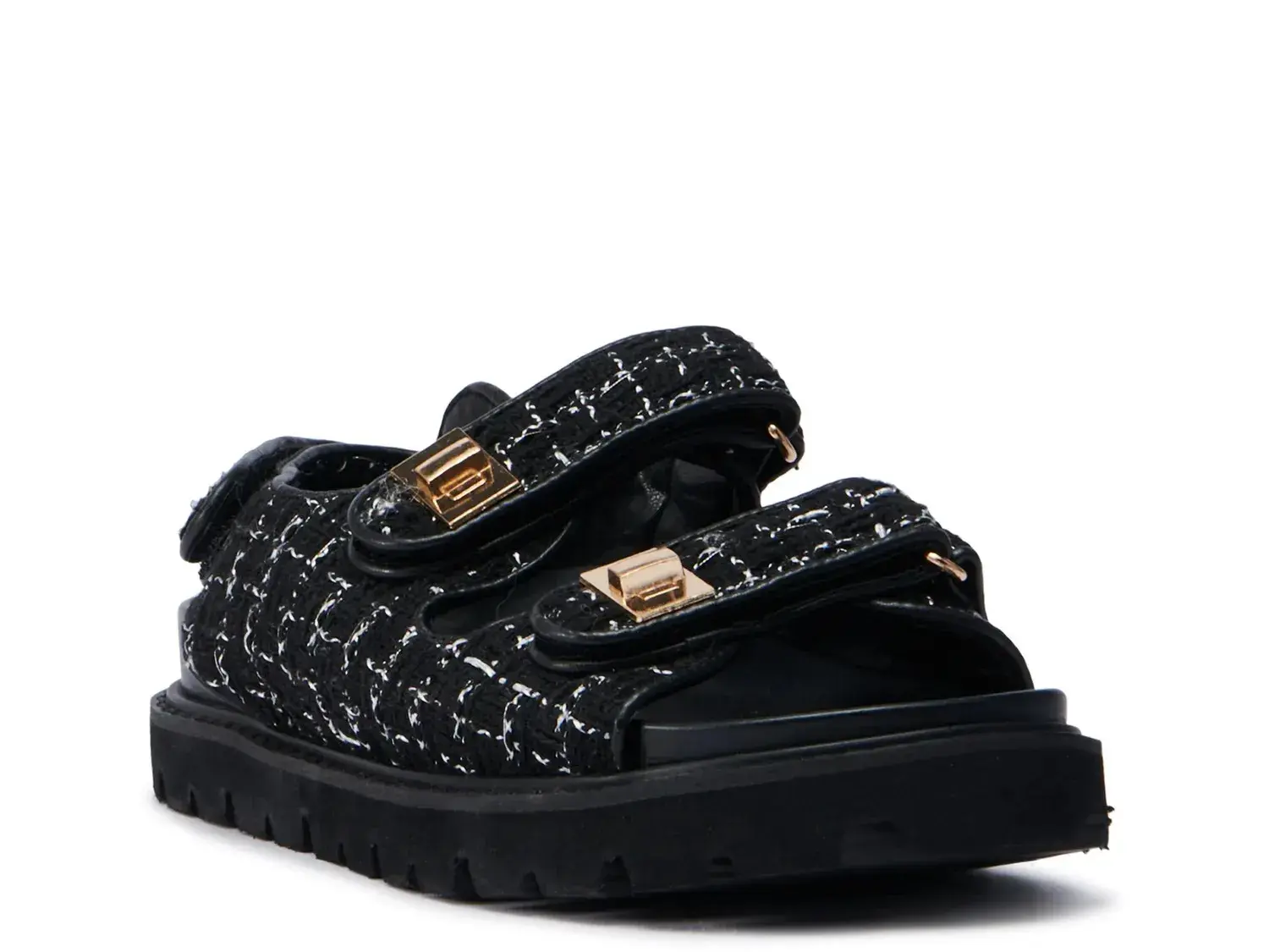 Стильные и удобные, вы никогда не захотите снимать сандалии Sandie с Azalea Wang. Тройные ремешки на липучке обеспечивают плотное прилегание, а привлекательные фурнитурные акценты золотистого оттенка на союзке придают ей сияющий вид. Ребристая подошва обеспечивает надежную поддержку.