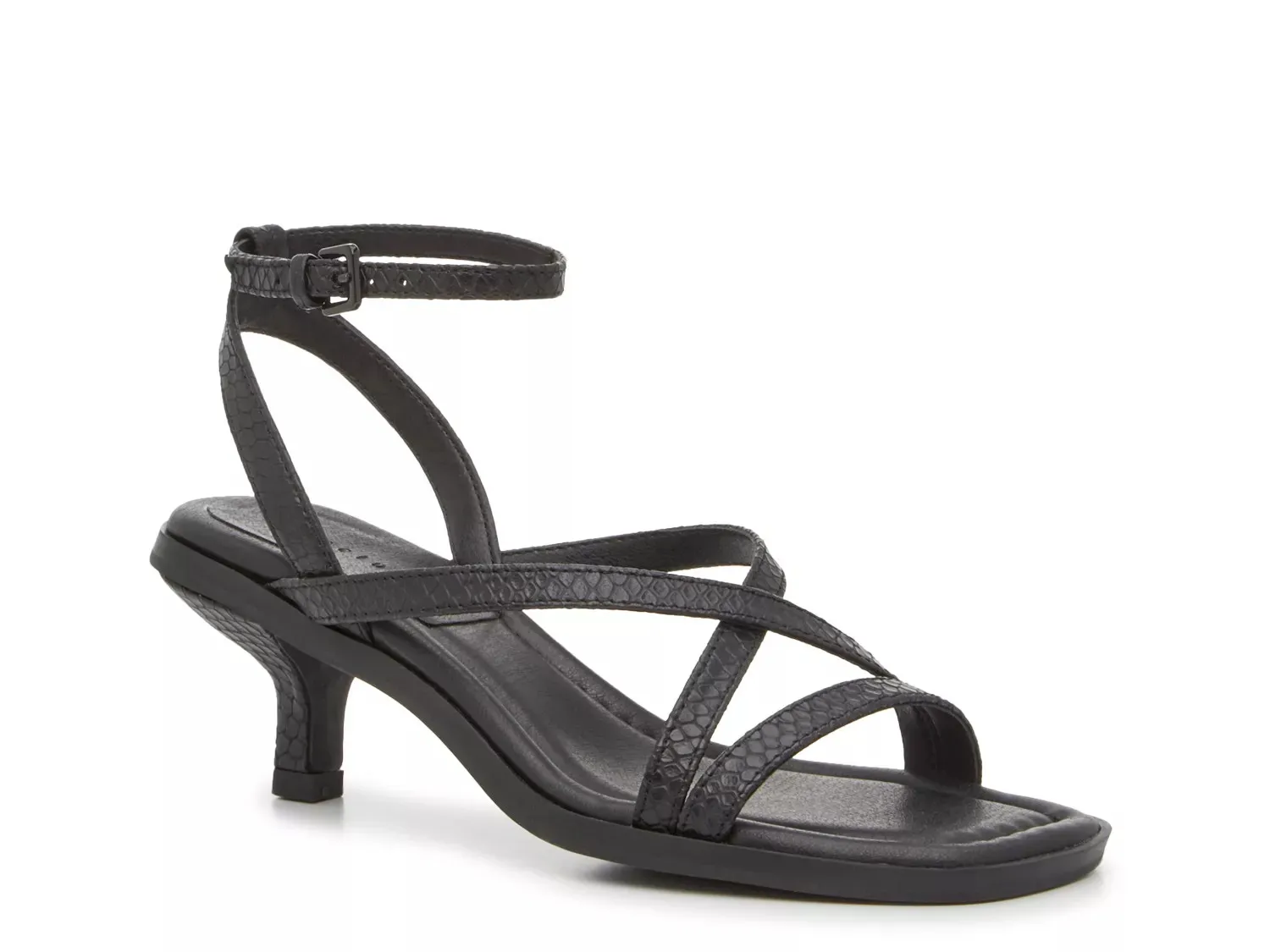 С надежной застежкой на пряжке и разумным каблуком котенка вы сможете рвать танцпол всю ночь напролет. Сандалии Glimmer от Sanctuary — практичный вариант, но также имеют ассиметричные ремешки и квадратный носок, что делает их модным дополнением.