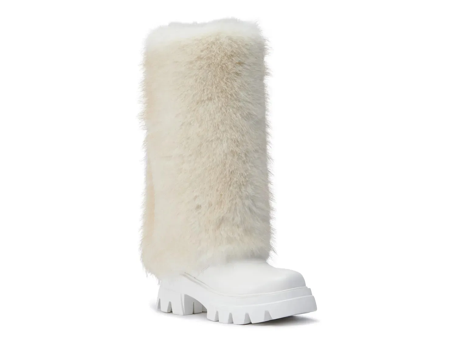 Получите эту шикарную, роскошную привлекательность с сапогами Ahsoka от Azalea Wang. Откидной голенище из искусственного меха, заостренный носок, массивная платформа и блочный каблук делают эти сапоги до колена очень модными.