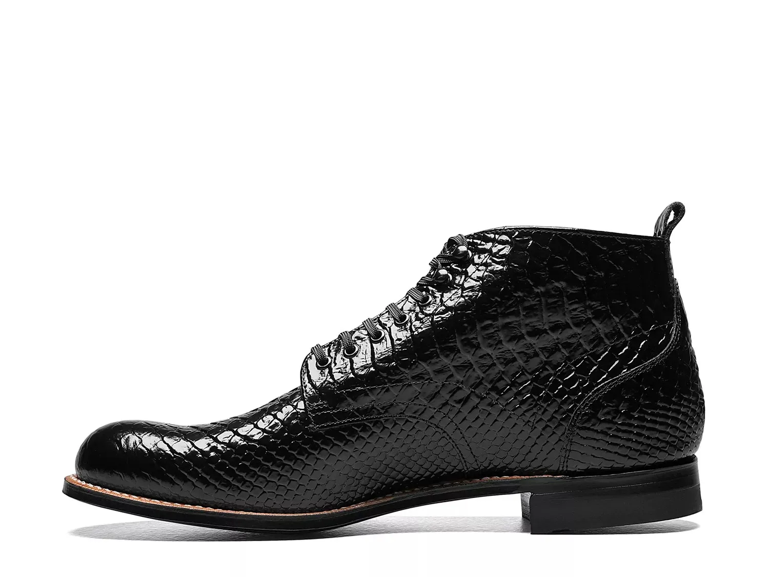 Изысканность принимает причудливый оборот в ботинках Madison от Стейси Адамс. Ботинок имеет рантовую конструкцию Goodyear с верхом из кожи анаконды для дополнительной привлекательности, мягкой подкладкой из детской кожи для комфорта и кожаной подошвой для лучшего сцепления.