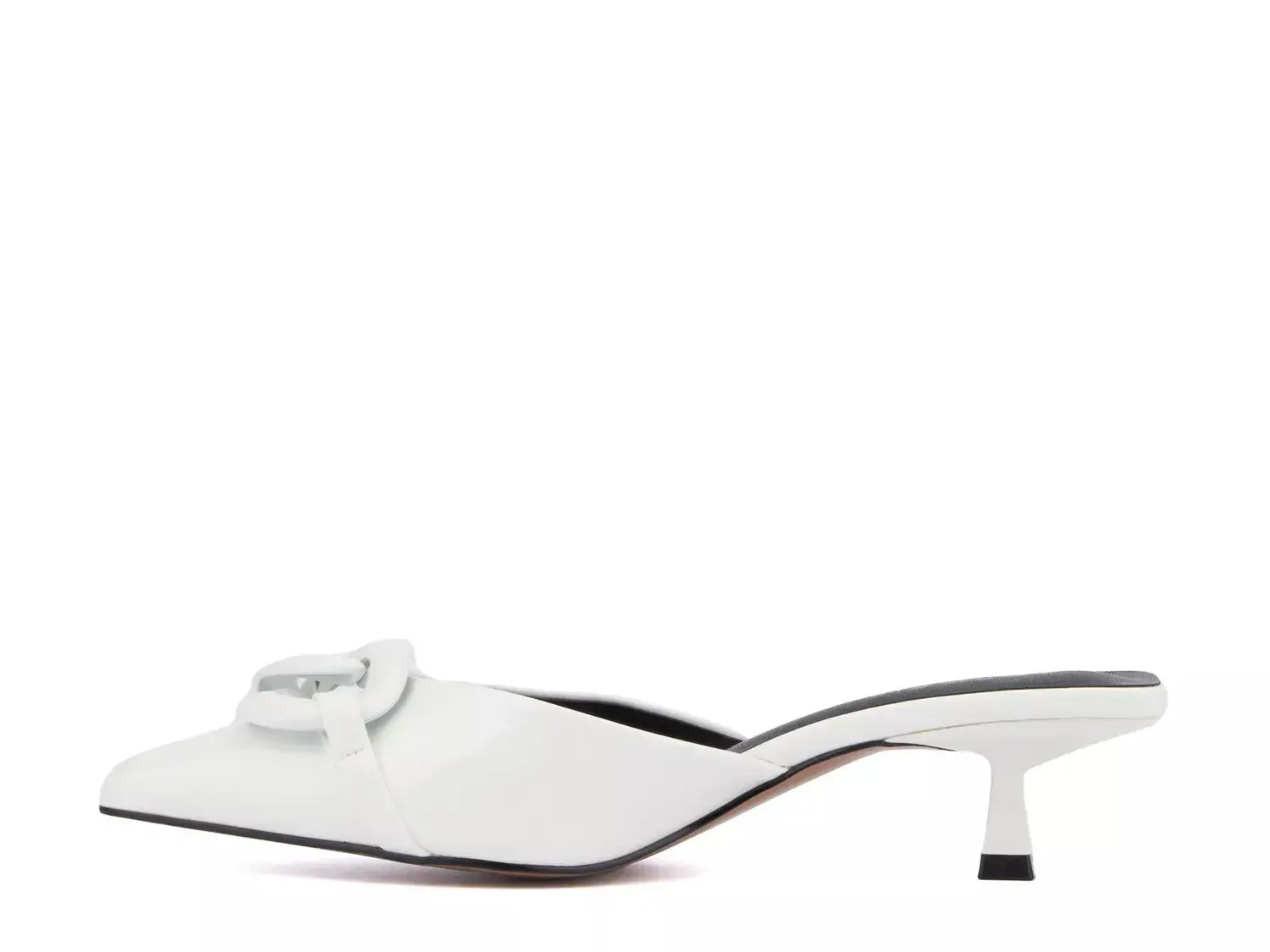 Привнесите элементы классического стиля в образ с мюлем Agustina от TORGEIS. Эта пара острых носков имеет тонкий каблук киттне, чтобы подчеркнуть ансамбль.